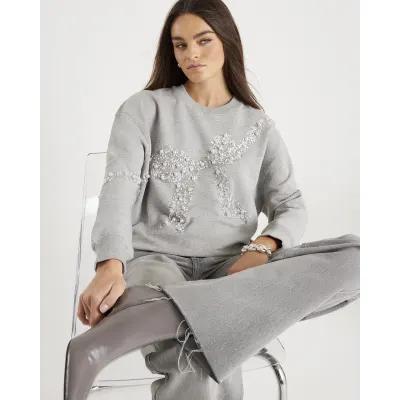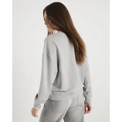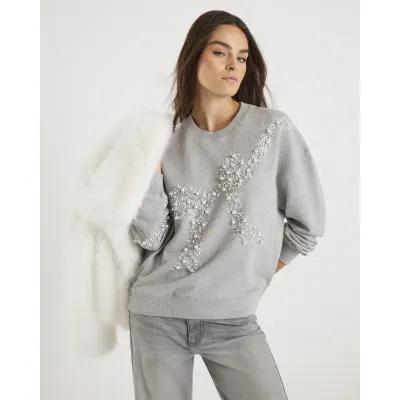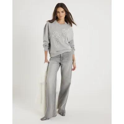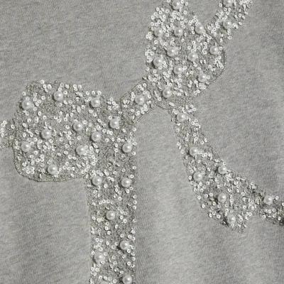 Grey Embellished Bow Christmas Sweatshirt