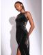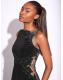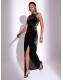 Lipsy Black Velvet Mesh Mix Appliqué Maxi Dress