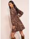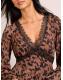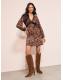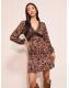 Friends Like These Brown Animal Jersey Long Sleeve Lace Trim V-Neck Mini Dress