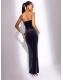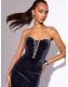 Lipsy Navy Velvet Crystal Embellished Trim Bandeau Maxi Dress