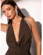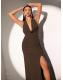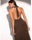Lipsy Brown Slinky Diamonte Ruched Backless Fishtail Maxi Dress