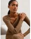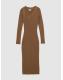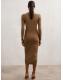 Reiss Camel Zeta Asymmetric-Neck Rib-Knit Midi Dress