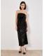 Apricot Black Velvet Sequin Bandeau Midi Dress