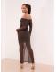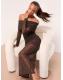 Lipsy Chocolate Brown Hotfix Bardot Long Sleeve Maxi Dress