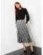 Lipsy Black/White Petite Gold Snaffle Trim Crew Neck Long Sleeve Stripe Patterned Knitted Midi Dress