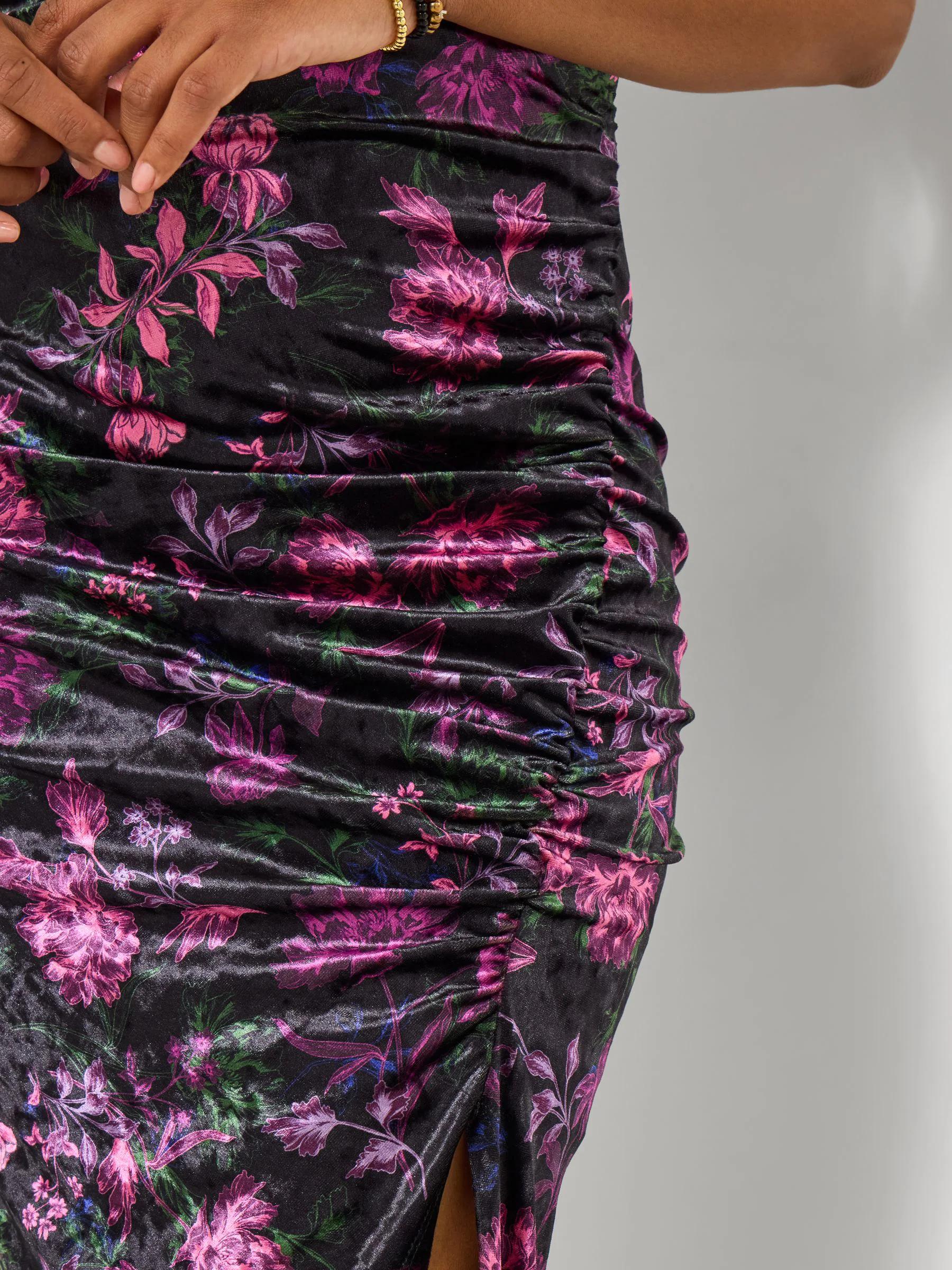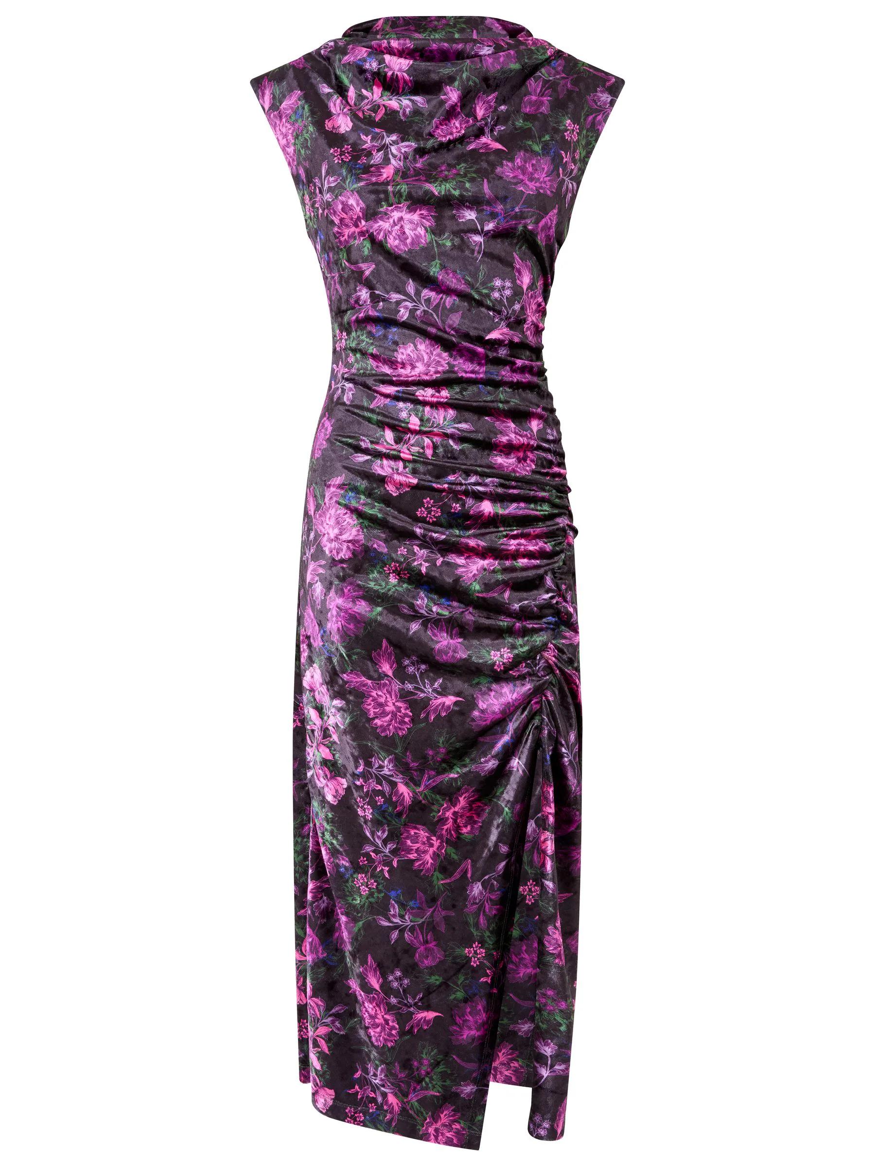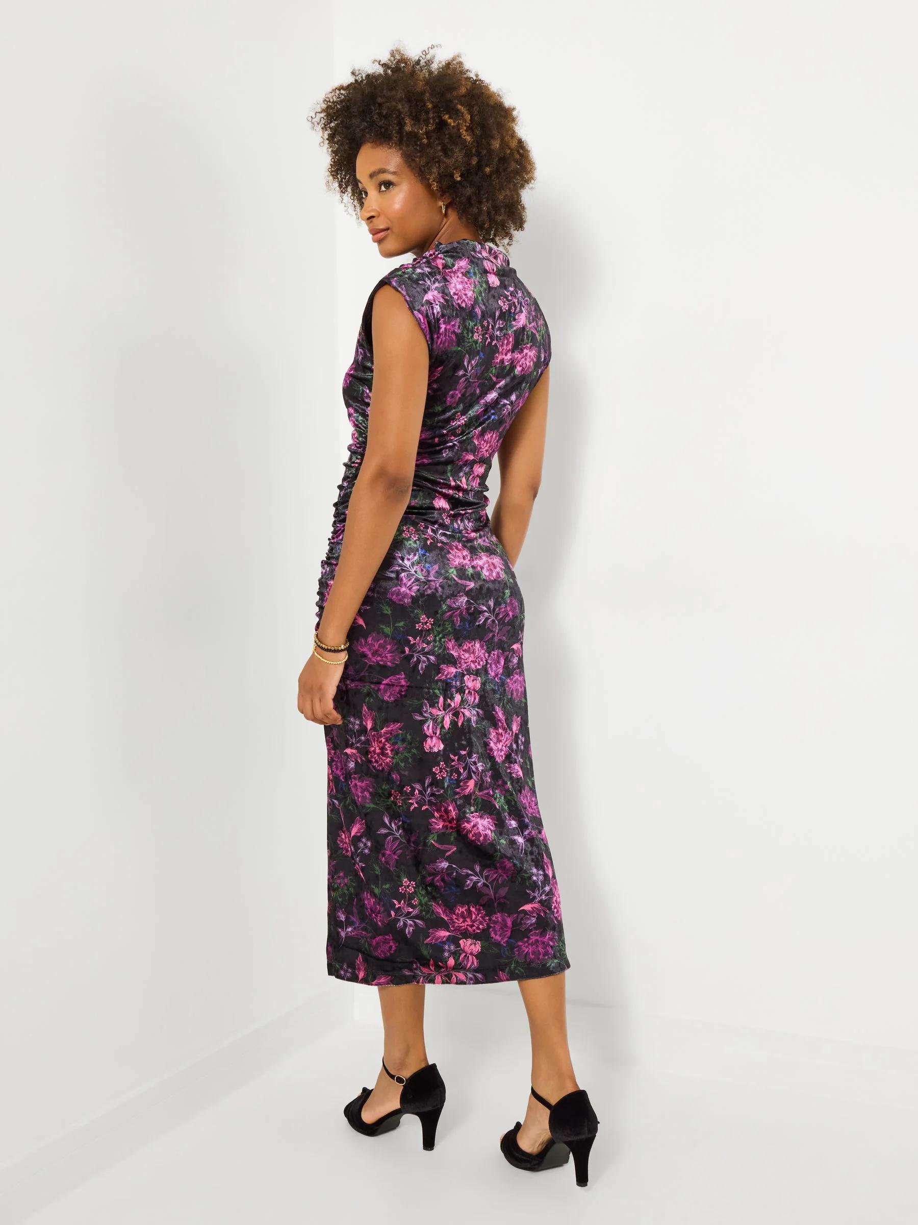 Joe Browns Purple Petite Floral Print Cowl Neck Velour Dress