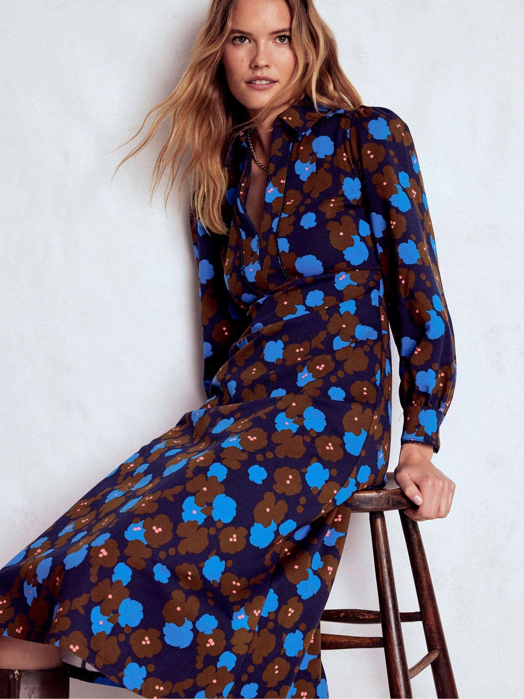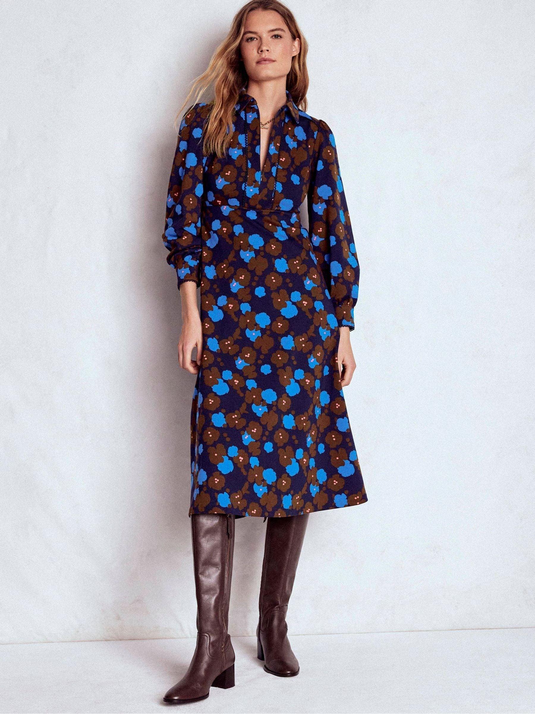 Boden Blue Pip Zip-up Ponte Midi Dress
