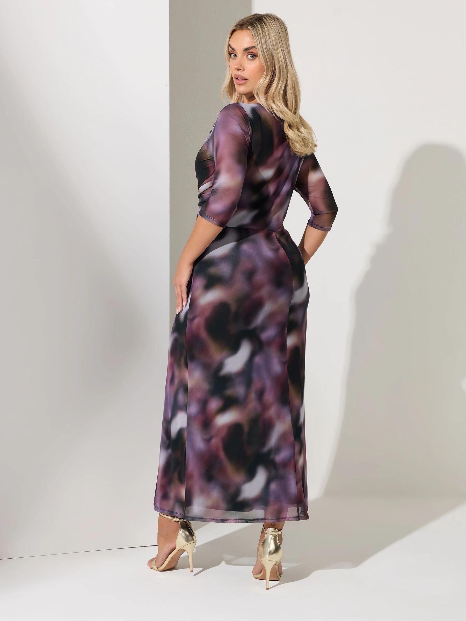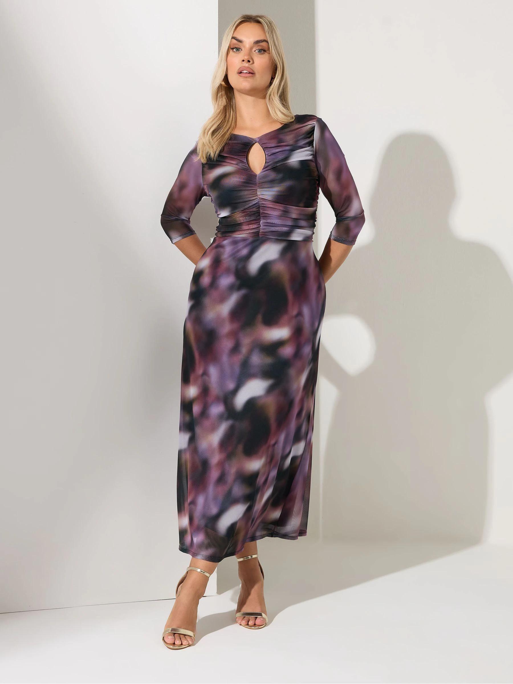 Yours Curve Purple London Blur Keyhole Mesh Dress