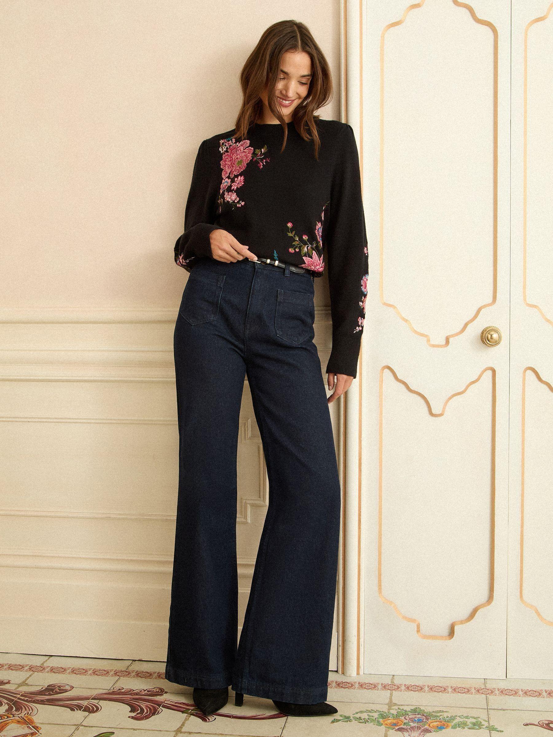 Love & Roses Black Floral Embroidered Embroidered Knit Jumper
