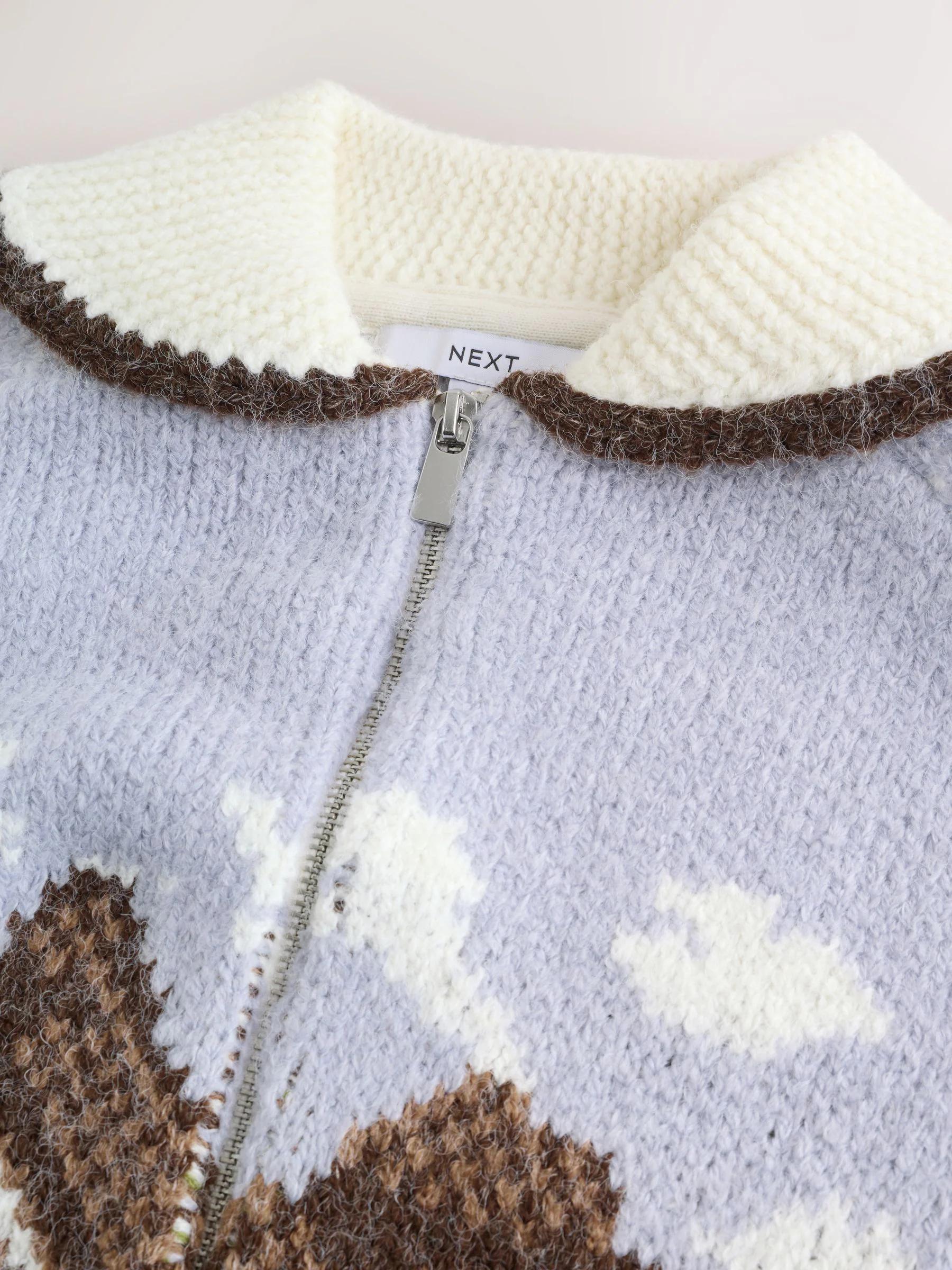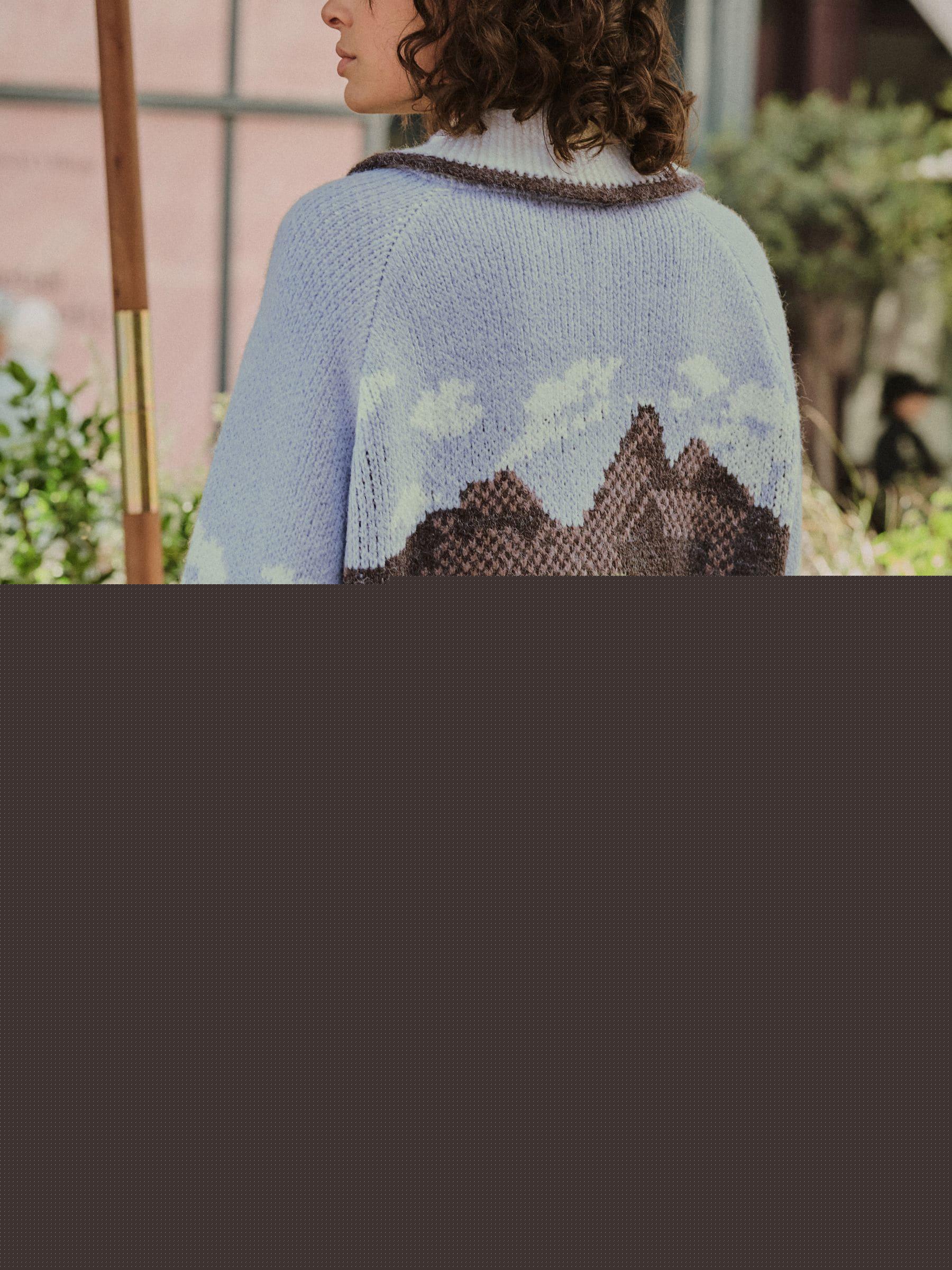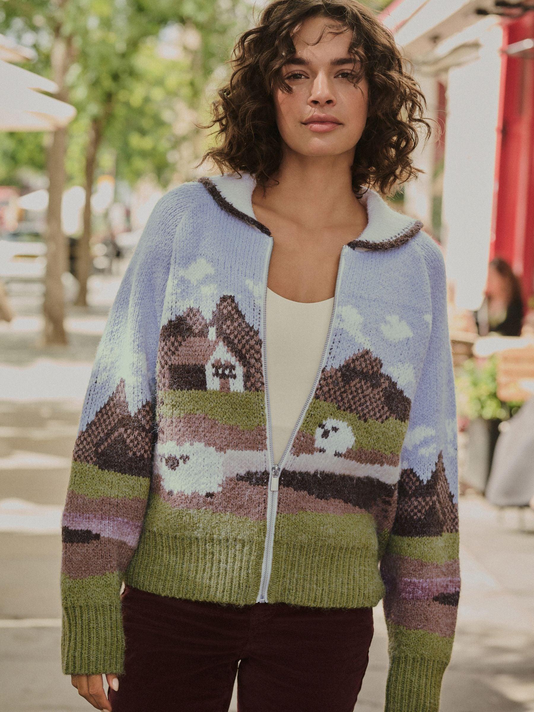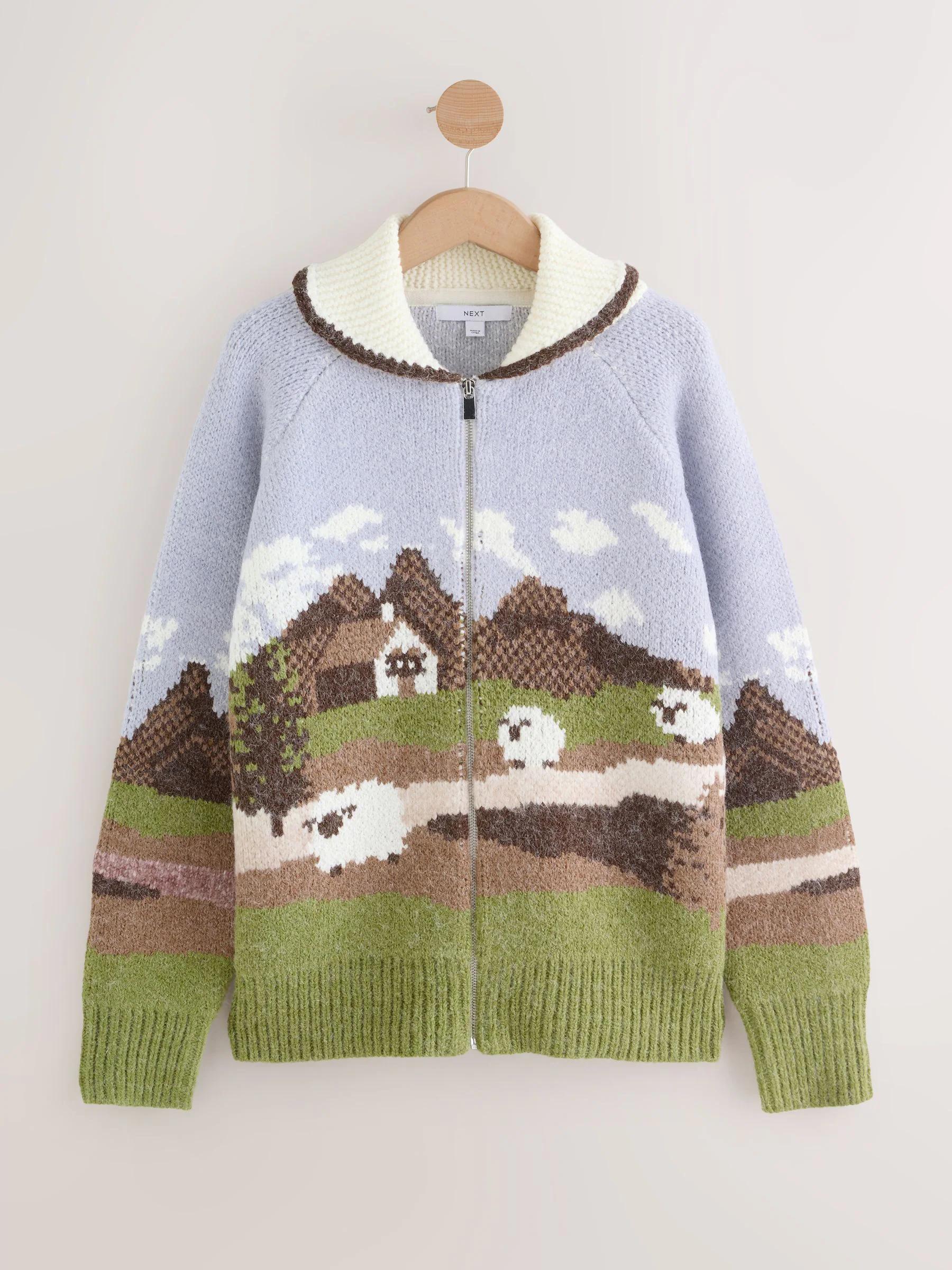 Blue and Green Landscape Scene Zip Cardigan