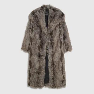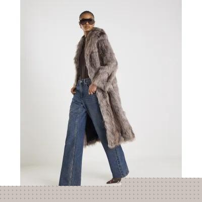 Grey Faux Fur Longline Coat