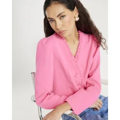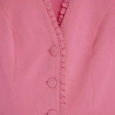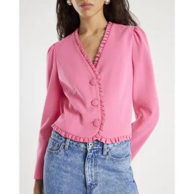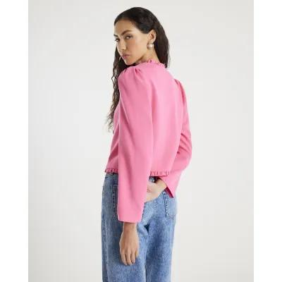 Pink Long Sleeve Frill Trim Jacket