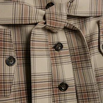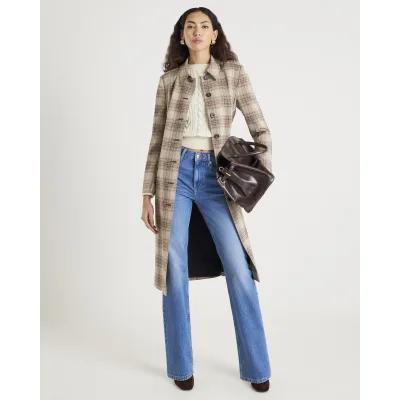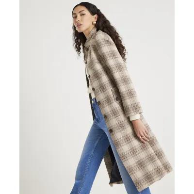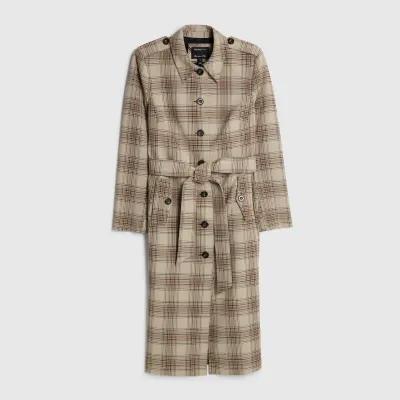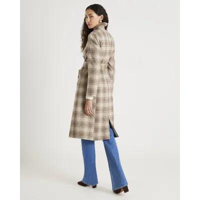 Beige Check Longline Tailored Belted Coat