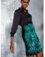 Roman Green Sequin Embellished Velour Stretch Skirt