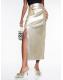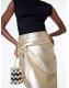 River Island Gold Ruched Front Faux Leather Midi Skirt