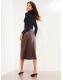 Lipsy Berry Red Faux Leather Petite Ruched Wrap Midi Skirt