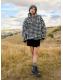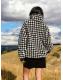 Black/White Houndstooth Check Jacquard Teddy Borg Quarter Zip Fleece Sweatshirt