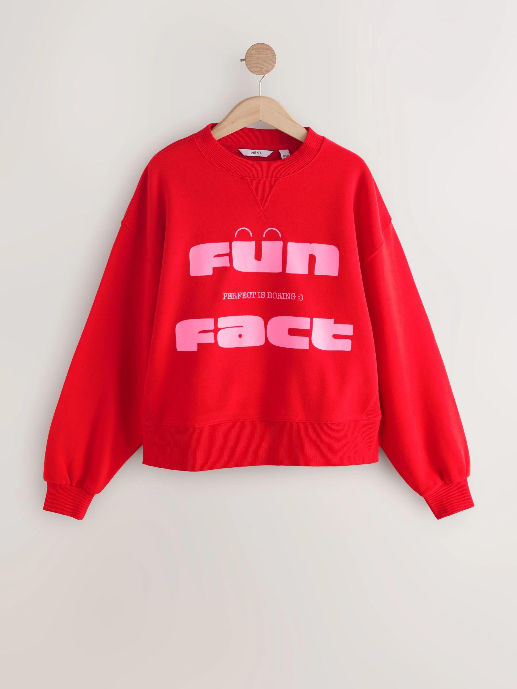 Red Graphics 'Fun Fact' Conversational Long Sleeve Crew Neck Sweatshirt