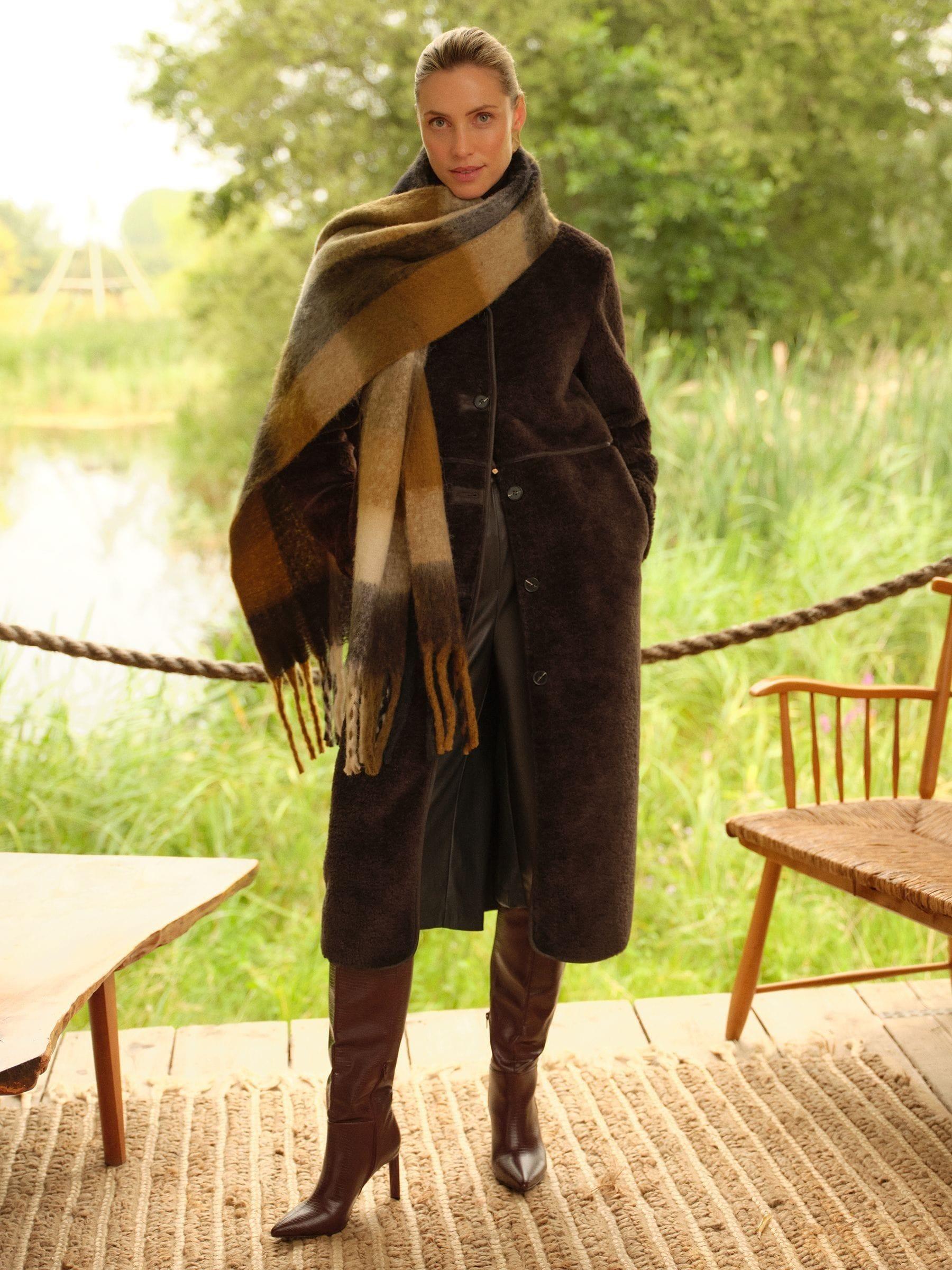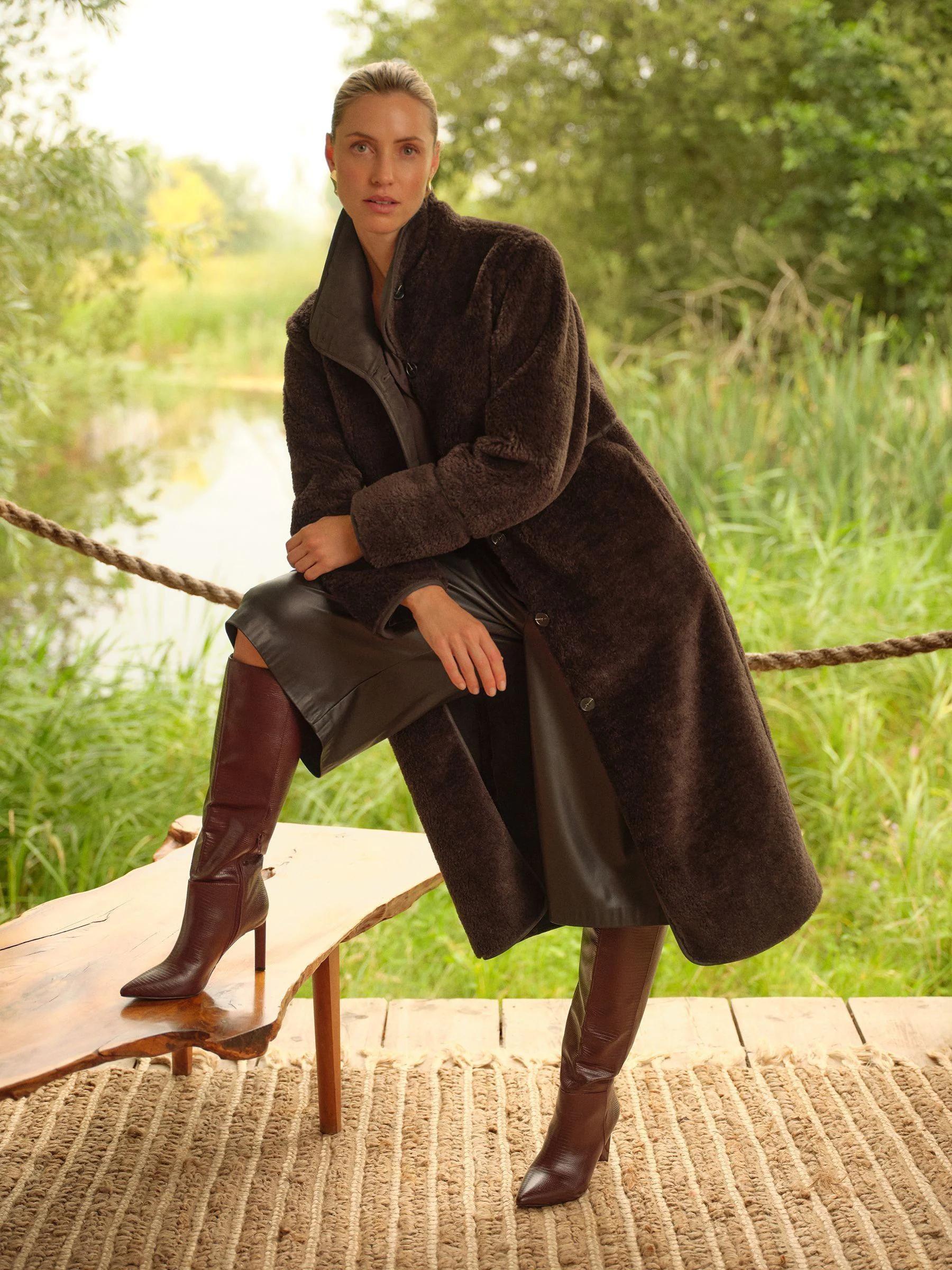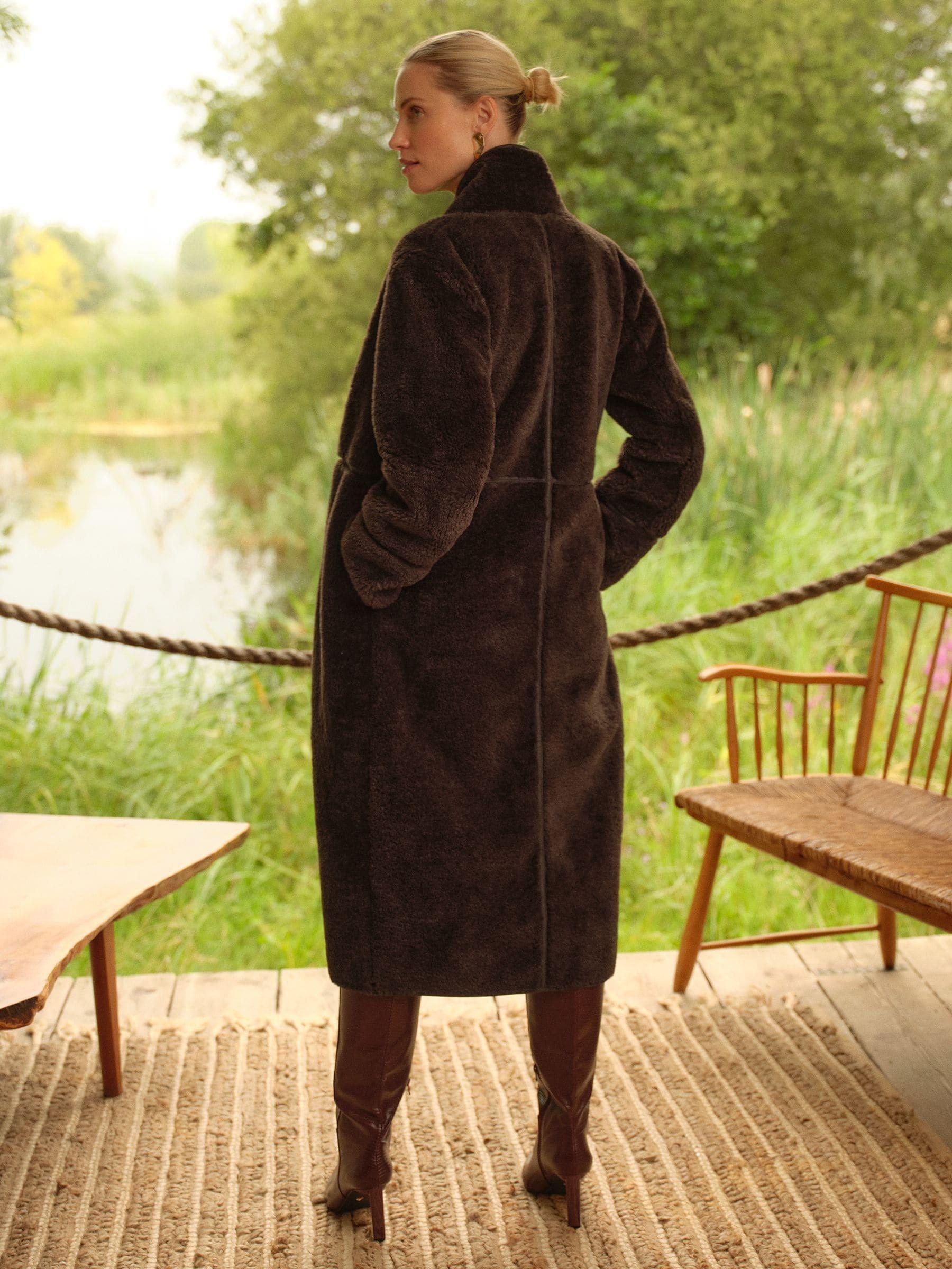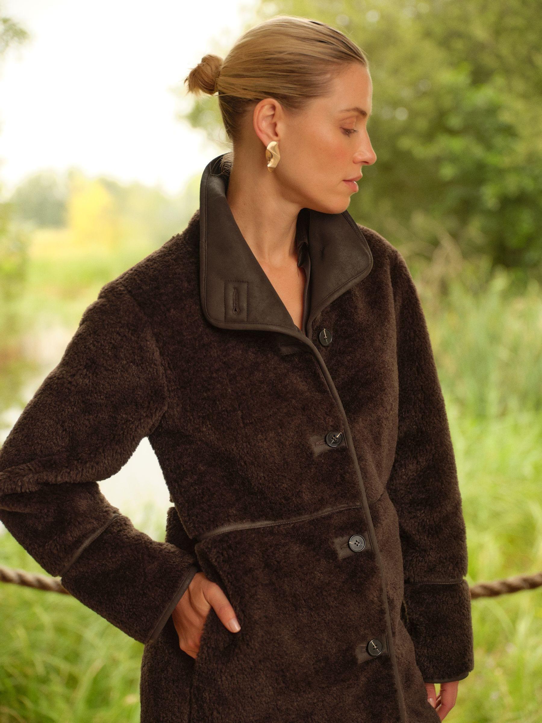 Love & Roses Chocolate Brown Tipped Midi Shearling Coat