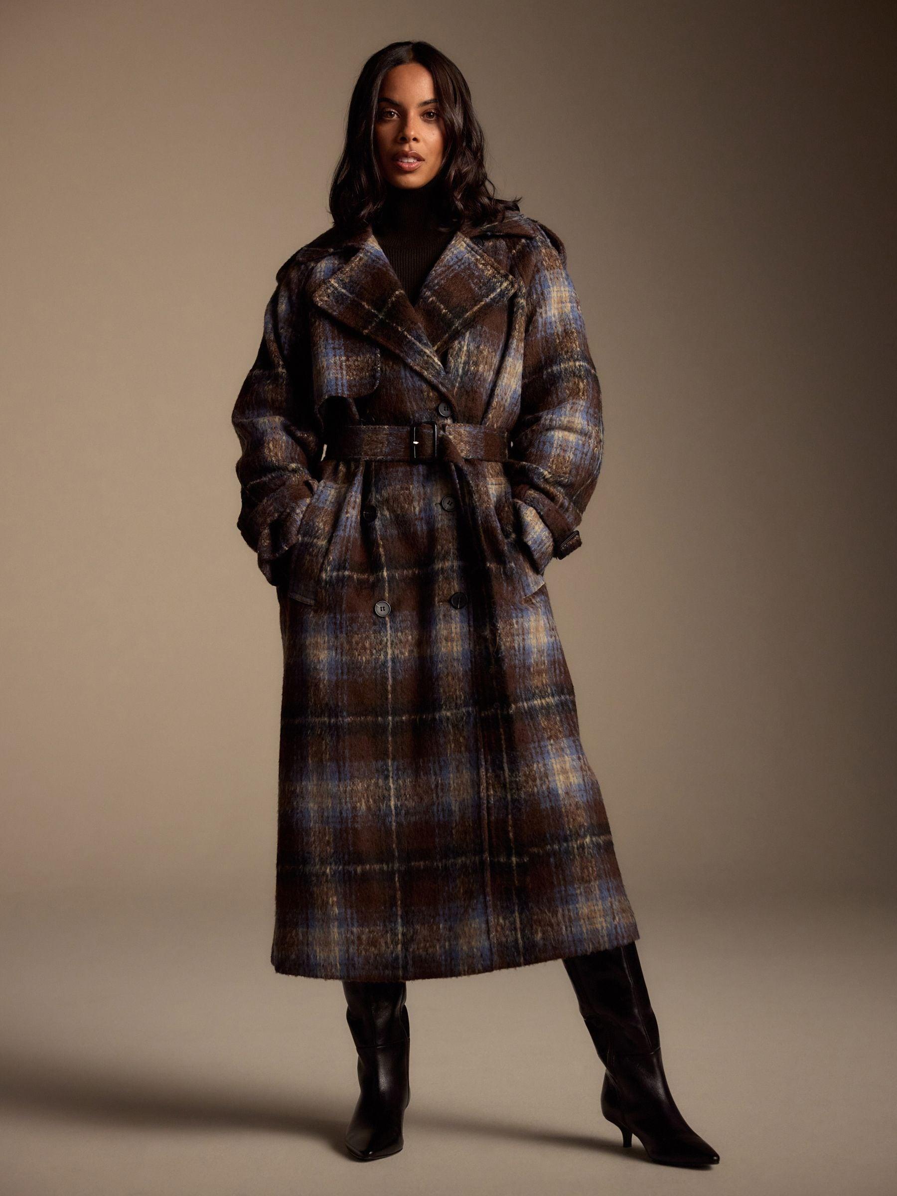 Chocolate Brown Check Check Trench Coat