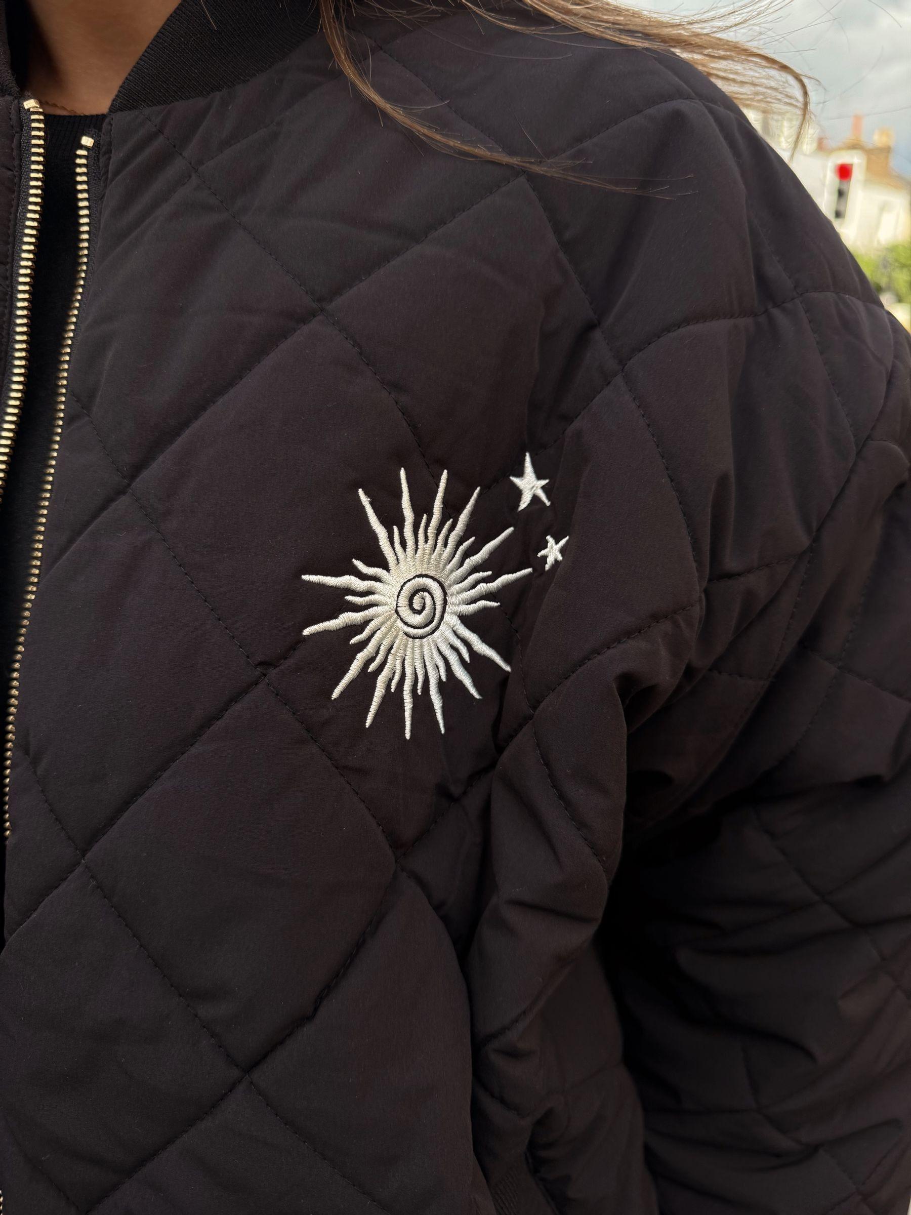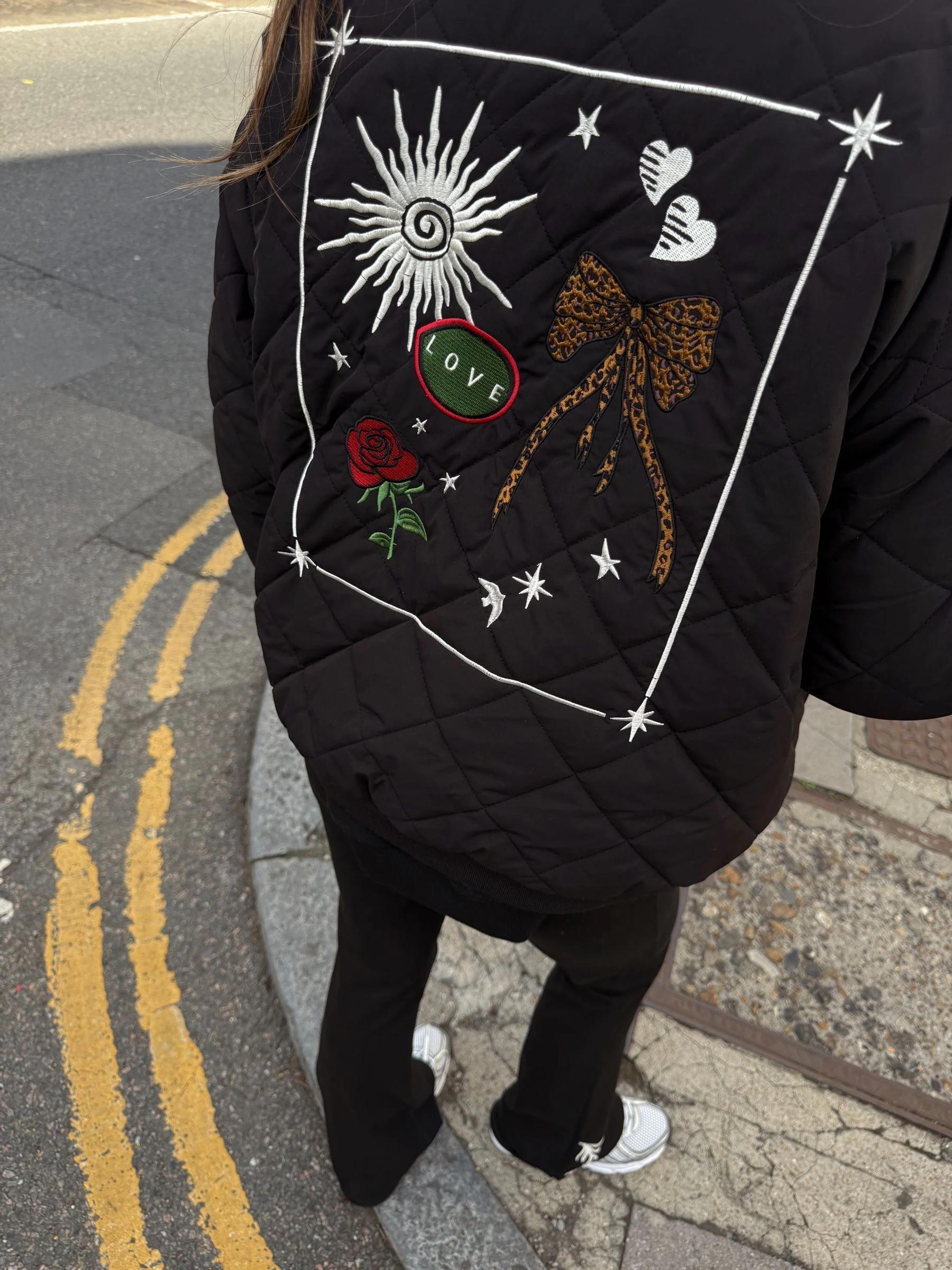 Never Fully Dressed Black Embroidered Quilted Fur Lined Bomber Jacket