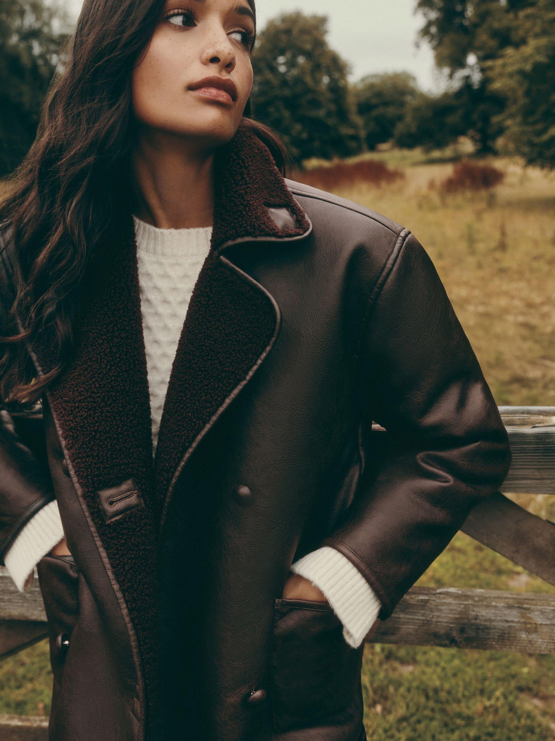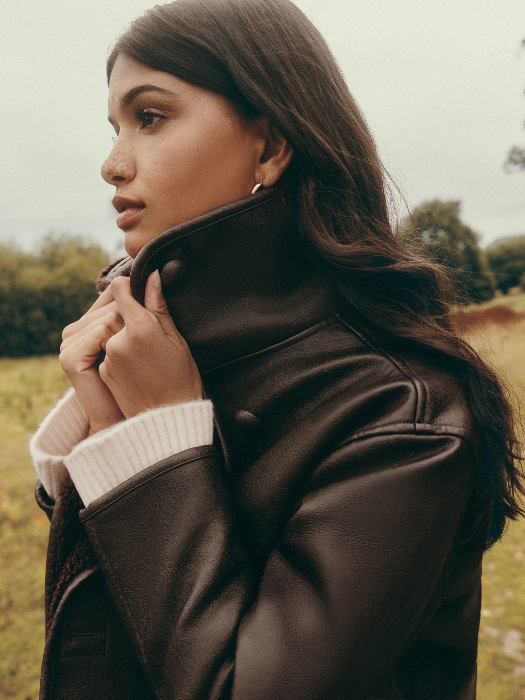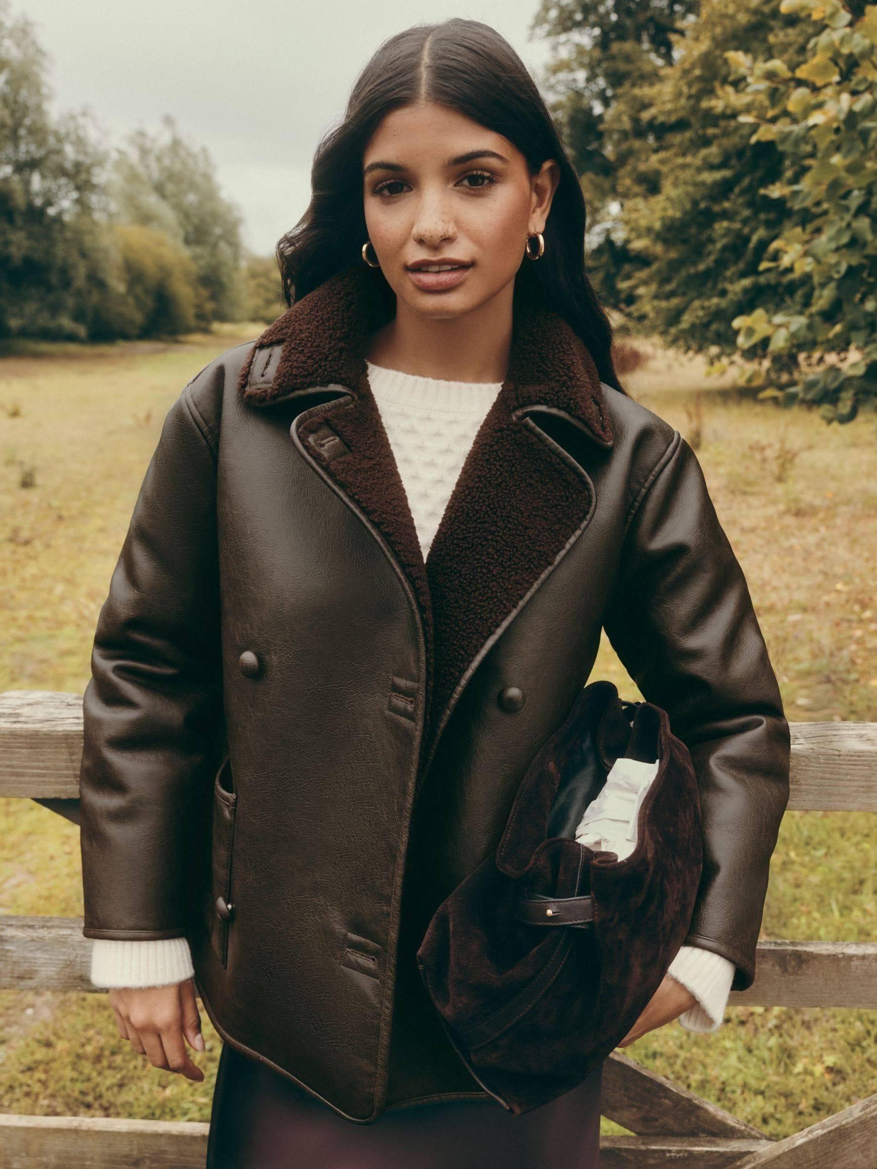 Friends Like These Brown Oversized Button Front Borg Lined Jacket