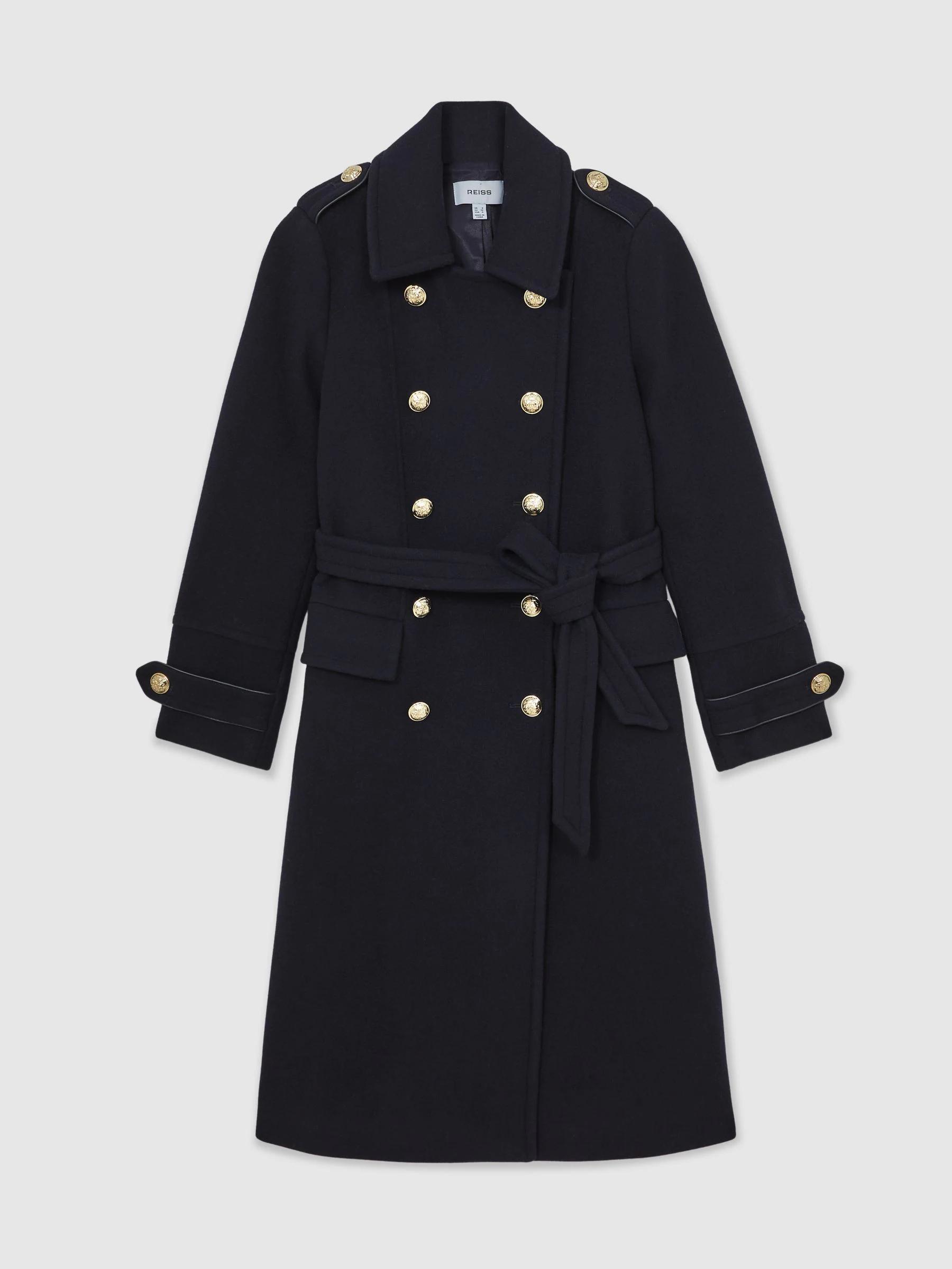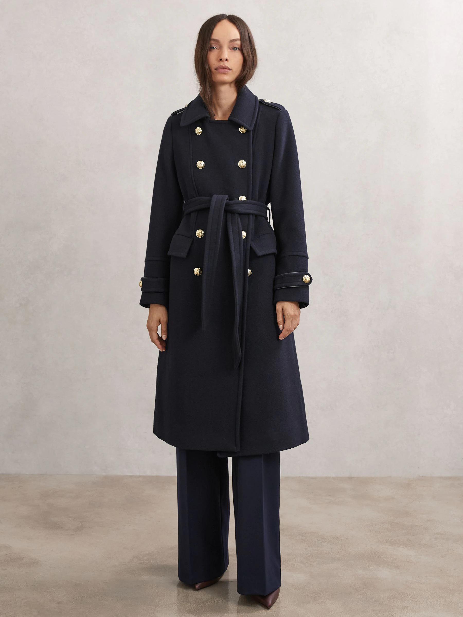 Reiss Navy Farley Wool-Blend Double-Breasted Coat