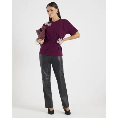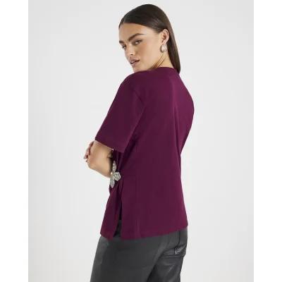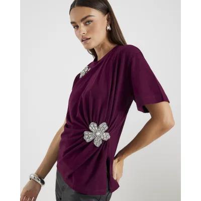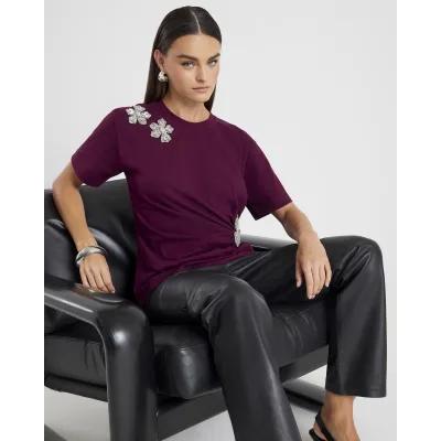 Red Short Sleeve Diamante Flower T-shirt