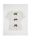 Cream Short Sleeve Textured Bow Top