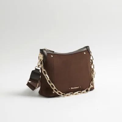 Brown Chain Front Cross Body Bag