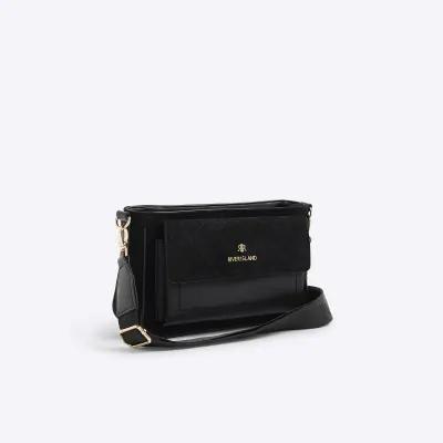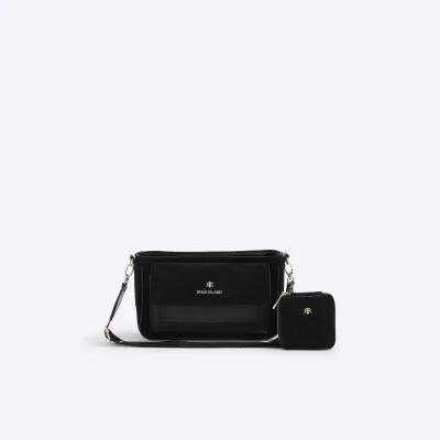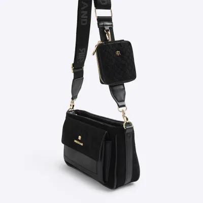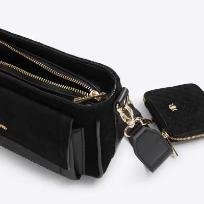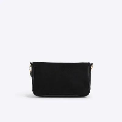 Black Monogram Faux Suede Cross Body Bag