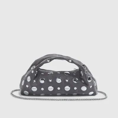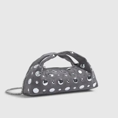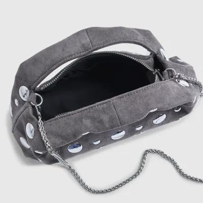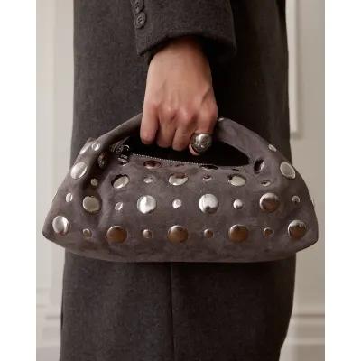 Grey Studded Faux suede Cross Body bag