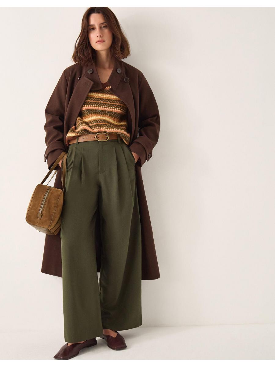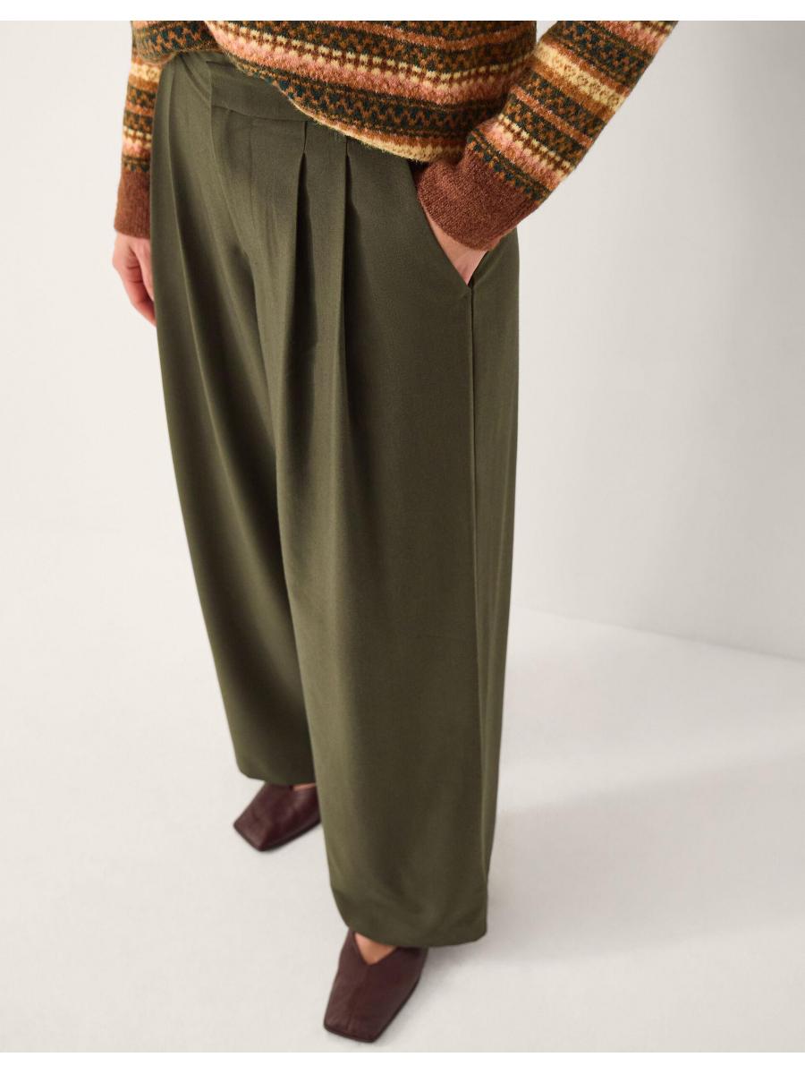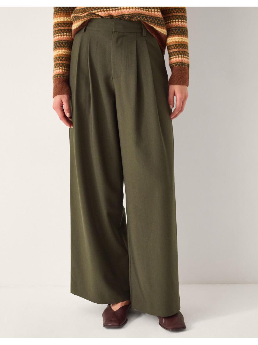Description An elevated essential. Doused in an olive tone, these trousers make putting together office 'fits that much easier. Designed with side pockets and top pleats to accentuate the wide leg cuffs, they look so good paired with a cosy knit and pointed boots. Green Details Fabric & Details Outer: Elastane 4% , Polyester 80% , Viscose 16% L 103 CM Machine wash Hook and Loop Plain Weight: 205.0 ID: 10004970105b-details__content-item"> Outer: Elastane 4% , Polyester 80% , Viscose 16%