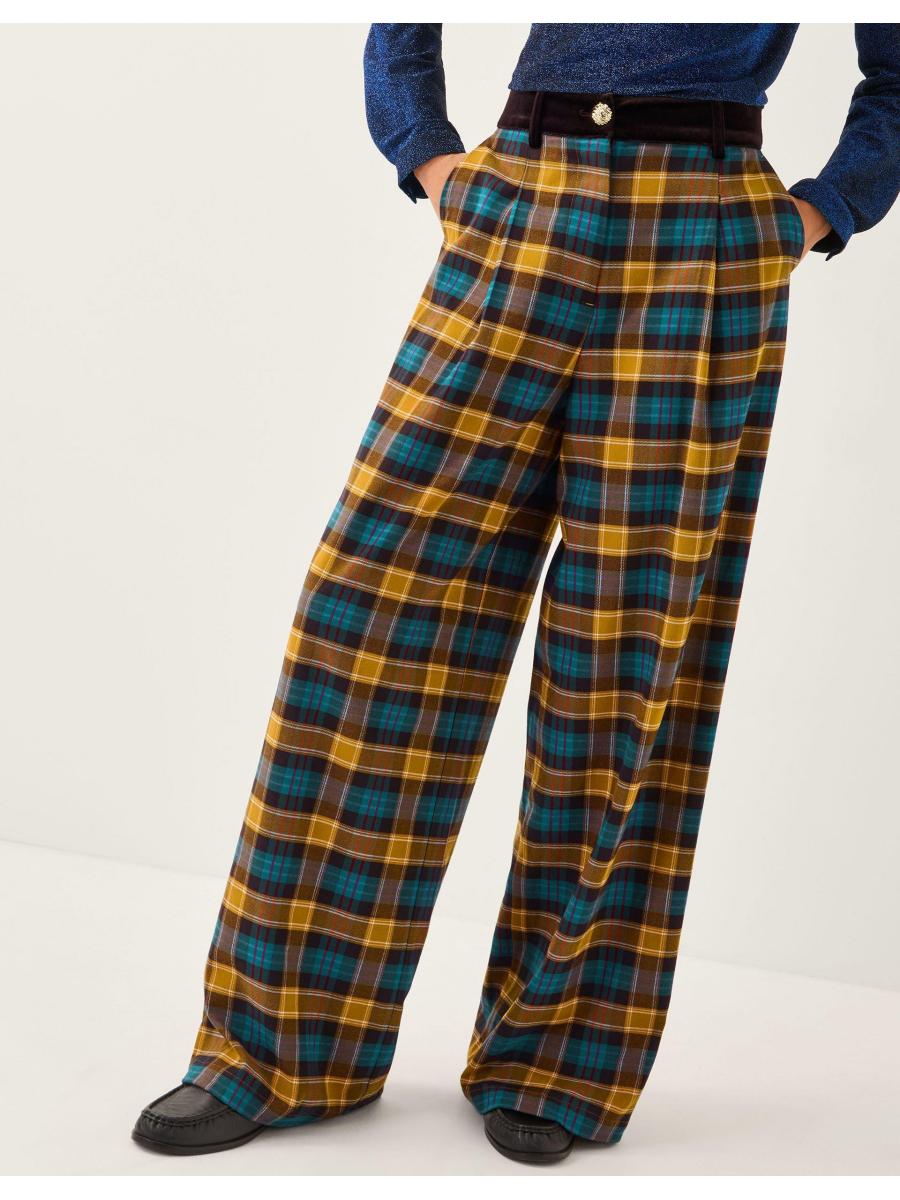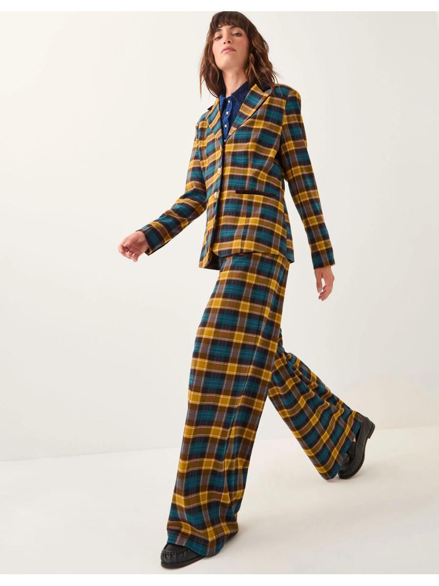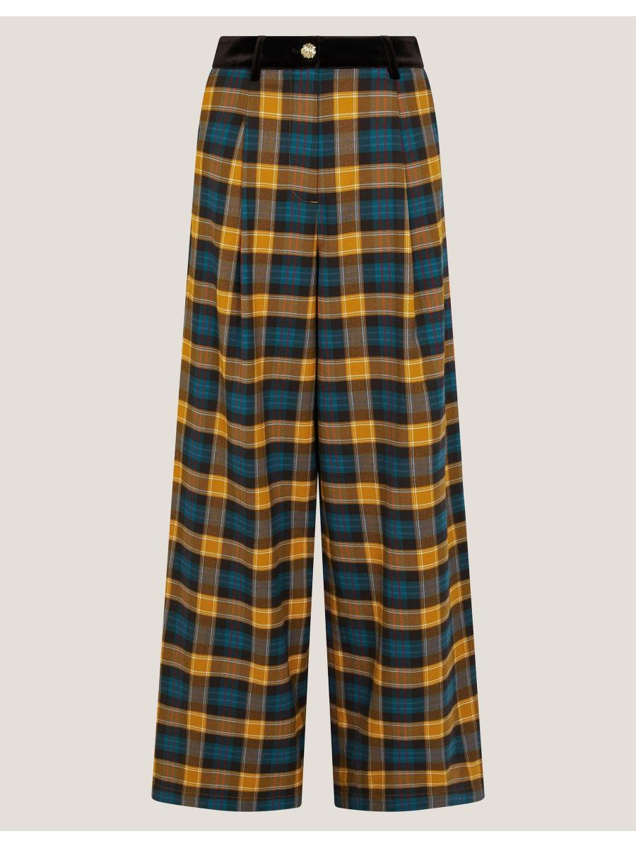 Anything but boring. An ode to tartan and tailoring, these wide leg trousers are a statement office staple guaranteed compliments from your co-workers. They sit high on the waist with a velvet band and gold-tone button fastening, bringing a touch of luxury to the charming heritage pattern. And to complete the look? The matching tie and blazer, of course. Yellow
