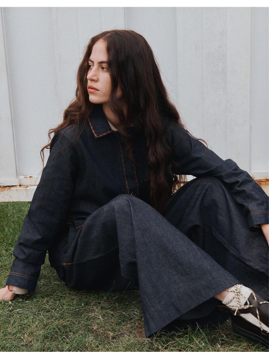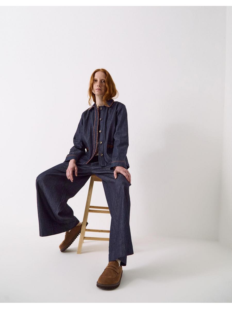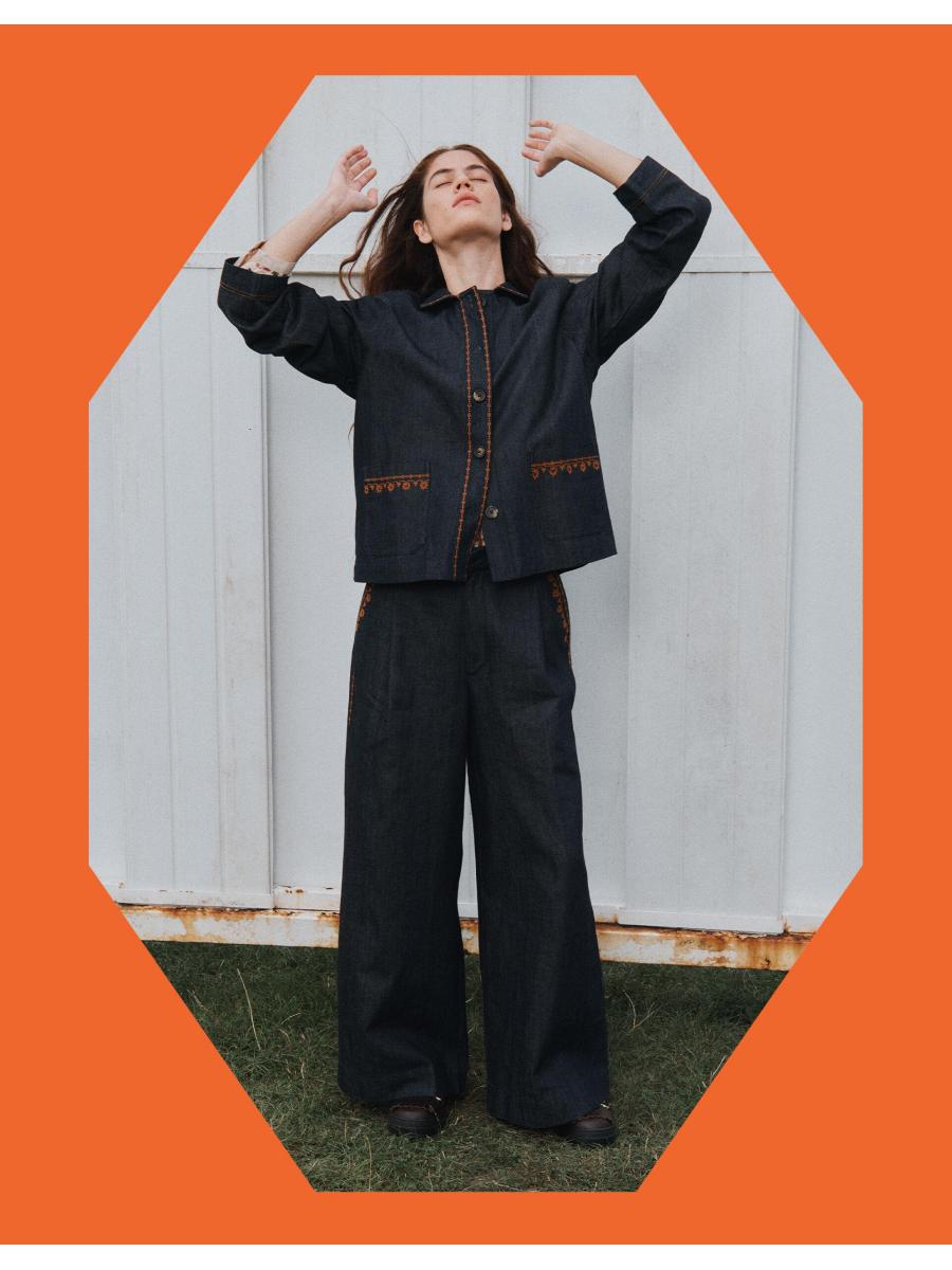 The product: Jean-ius workwear. The definition of smart-cazh, these trousers are tailored in a slouchy wide leg fit with a dark blue denim wash. Looking for a cool, co-ordinated look? Pair with the matching shirt jacket.