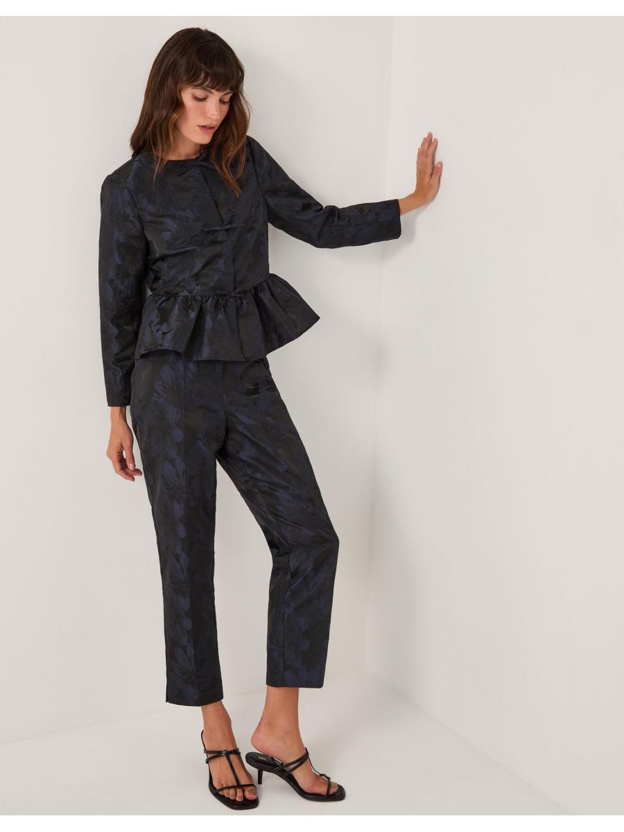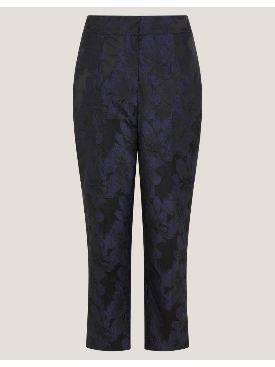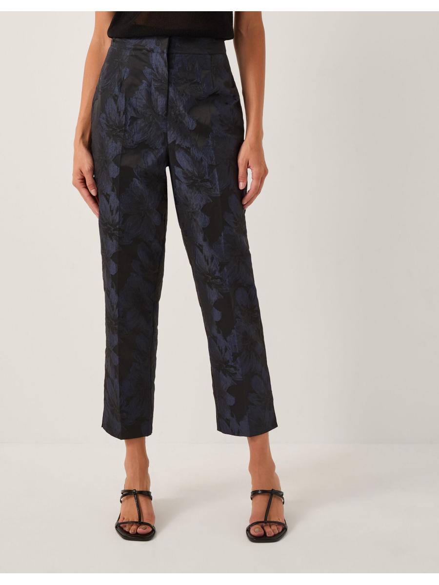Description Blooms in business. Showcasing jacquard florals in shimmery midnight tones, these trousers are tailored with a high waist, straight leg silhouette and slightly cropped cuffs. Wanna create a chic, co-ordinated look? Pair with the matching jacket. Blue Details Fabric & Details Outer: Polyester 100% Lining: Polyester 100% Machine wash Zip fastening Plain Weight: 138.0 ID: 20003670003b-details__content-item"> Outer: Polyester 100% Lining: Polyester 100%