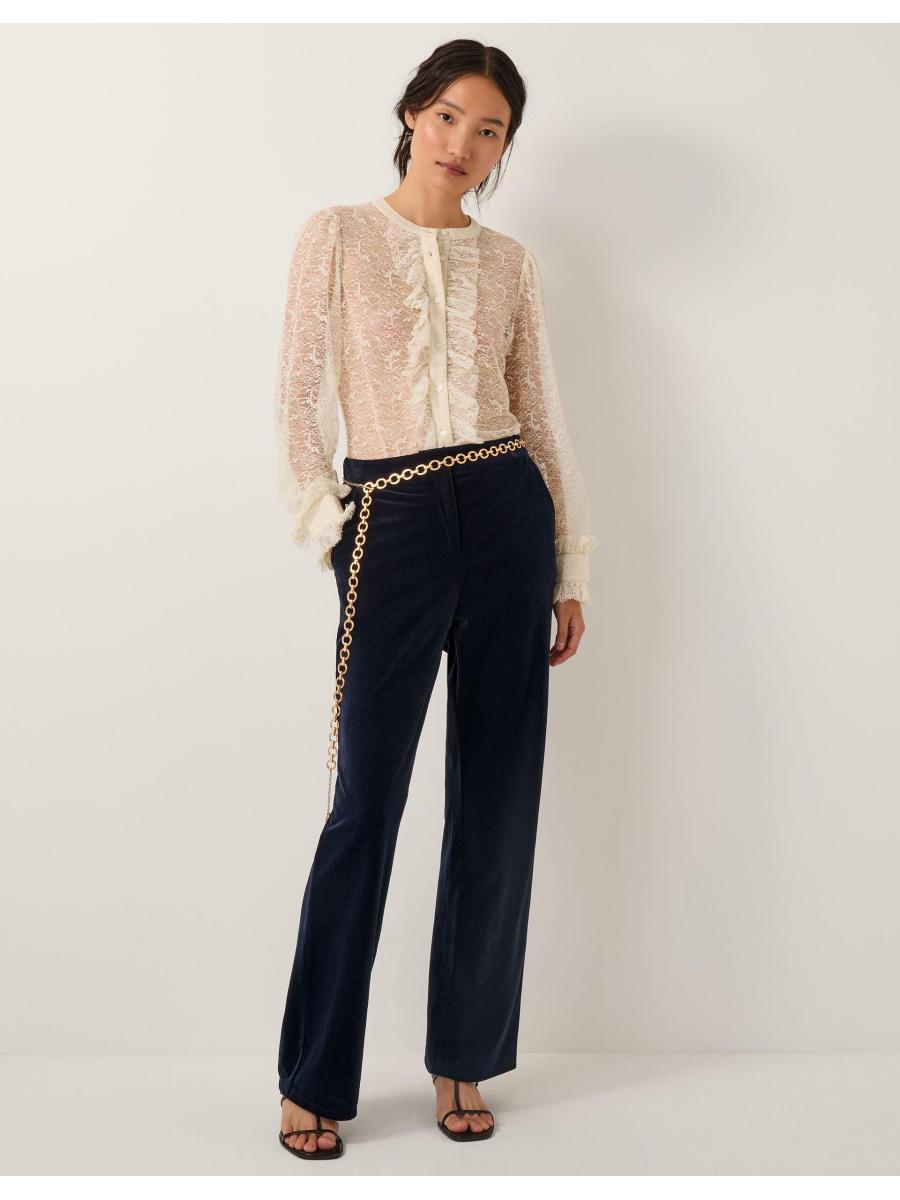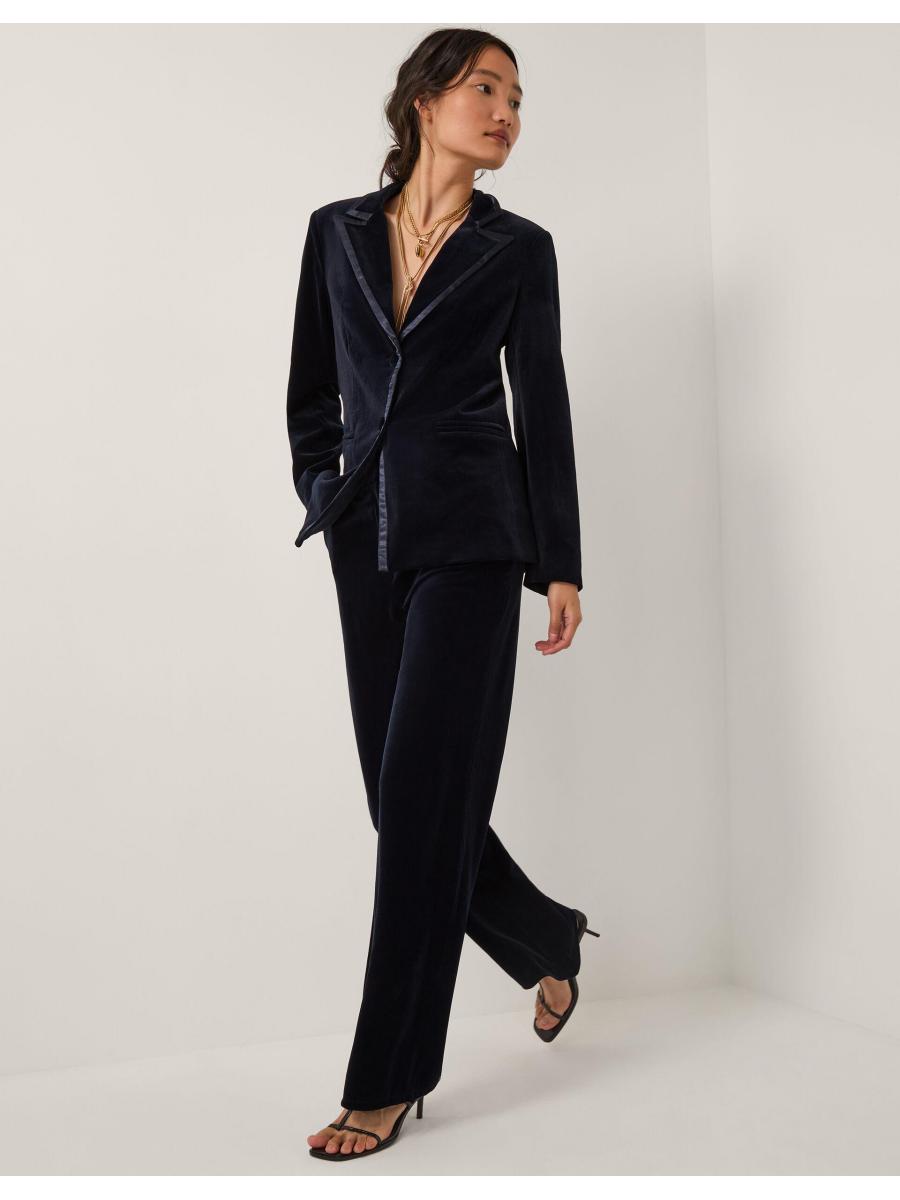 Description Dial up the drama. Business in the front, comfort in the back, these trousers are cut in a sleek straight leg fit, with a stretchy elastic back band to finish. Made from luxurious soft velvet, they're the ultimate pair for showing off in party season. Blue Details Fabric & Details Outer: Elastane 6% , Polyester 94% L 112 CM Machine wash Zip fastening Plain Weight: 285.0 ID: 10004380125b-details__content-item"> Outer: Elastane 6% , Polyester 94%