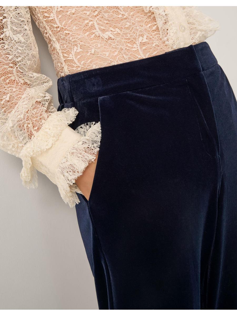 Mila Straight Velvet Trousers Blue