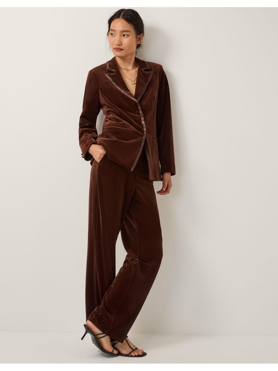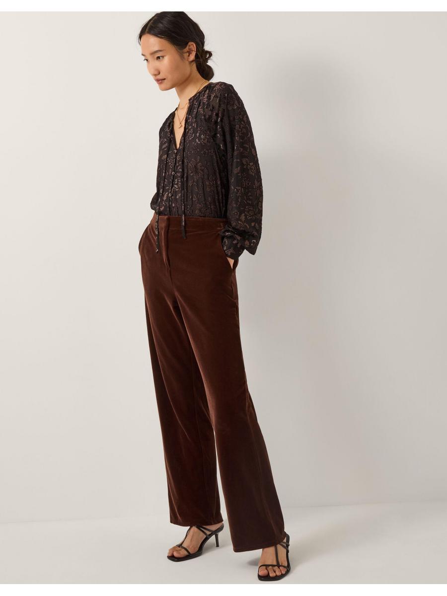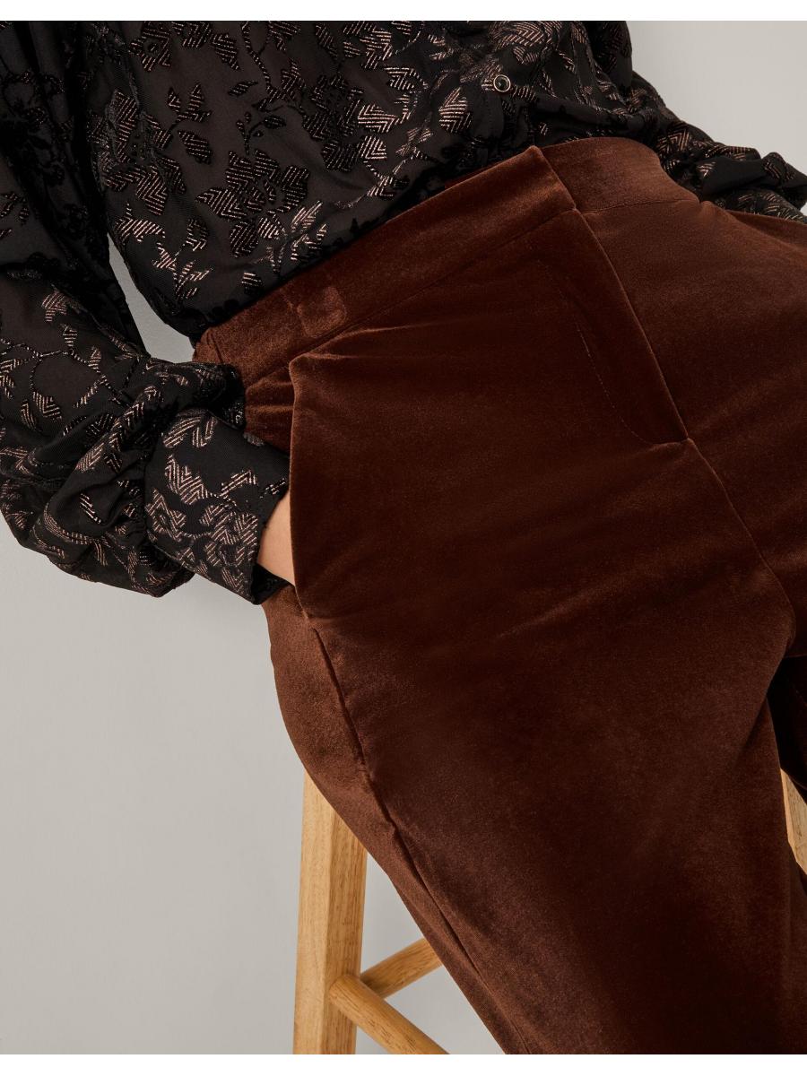 Description Dial up the drama. Business in the front, comfort in the back, these trousers are cut in a sleek straight leg fit, with a stretchy elastic back band to finish. Made from luxurious soft velvet, they're the ultimate pair for showing off in party season. Copper Details Fabric & Details Outer: Elastane 6% , Polyester 94% L 112 CM Machine wash Zip fastening Plain Weight: 285.0 ID: 10004380027b-details__content-item"> Outer: Elastane 6% , Polyester 94%