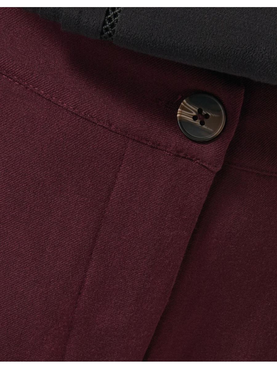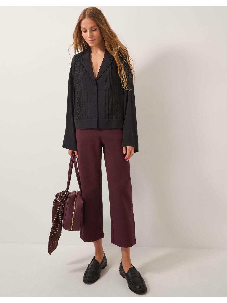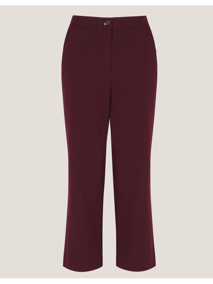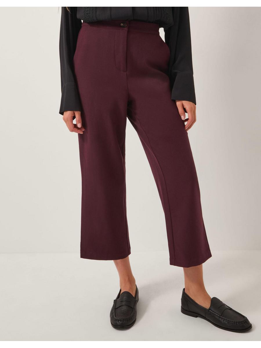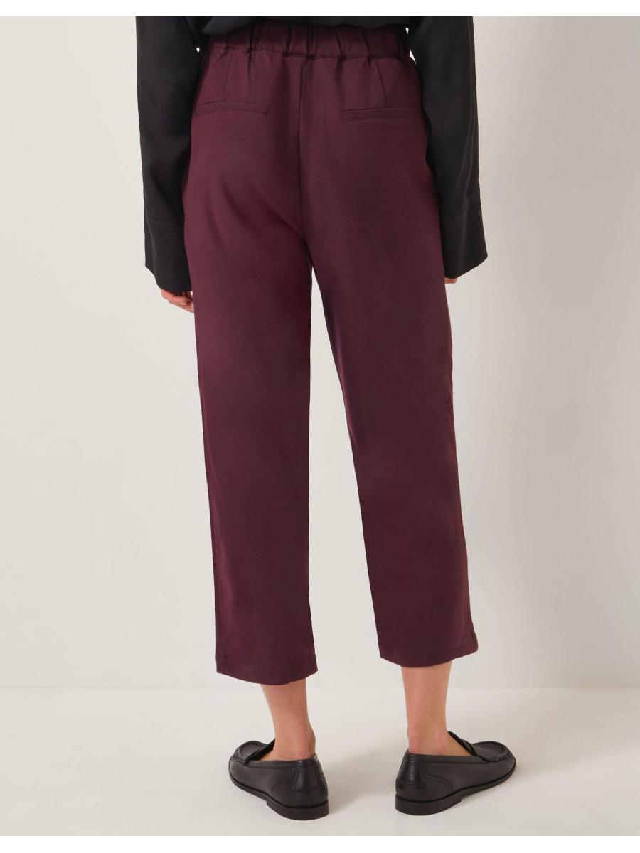Berry chic. When it comes to effortlessly smart workwear, these will always make the cut. Slung high on the waist with a comfy stretch back band, these trousers boast a straight leg fit and cropped hems. Complete the look with a boxy shirt and leather loafers to match your everyday tote. Purple