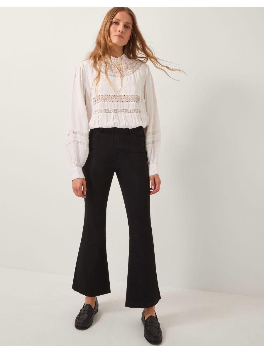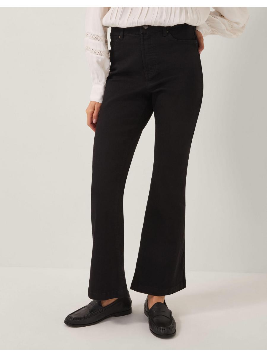 Description Flare share of charm. Sitting high on the waist with a silhouette that gets wider from the knee to the ankles, these jeans add playful dimensions to your denim collection. Style up for work with a crisp shirt and loafers or pair with a graphic tee and trainers for chill weekends. Black Details Fabric & Details Outer: Cotton (b) 82% , Elastane 2% , Polyester 16% L 68 CM machine wash Zip and Button Plain Weight: 285.0 ID: 10060380001b-details__content-item"> Outer: Cotton (b) 82% , Elastane 2% , Polyester 16%
