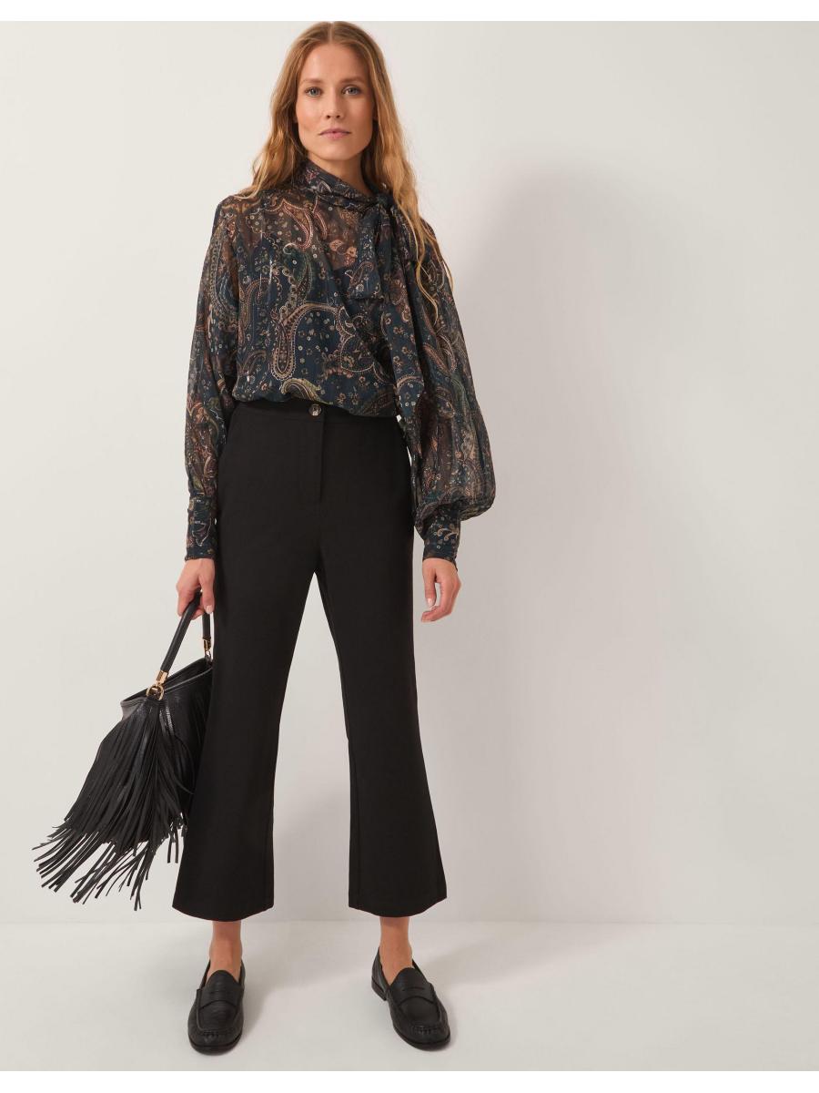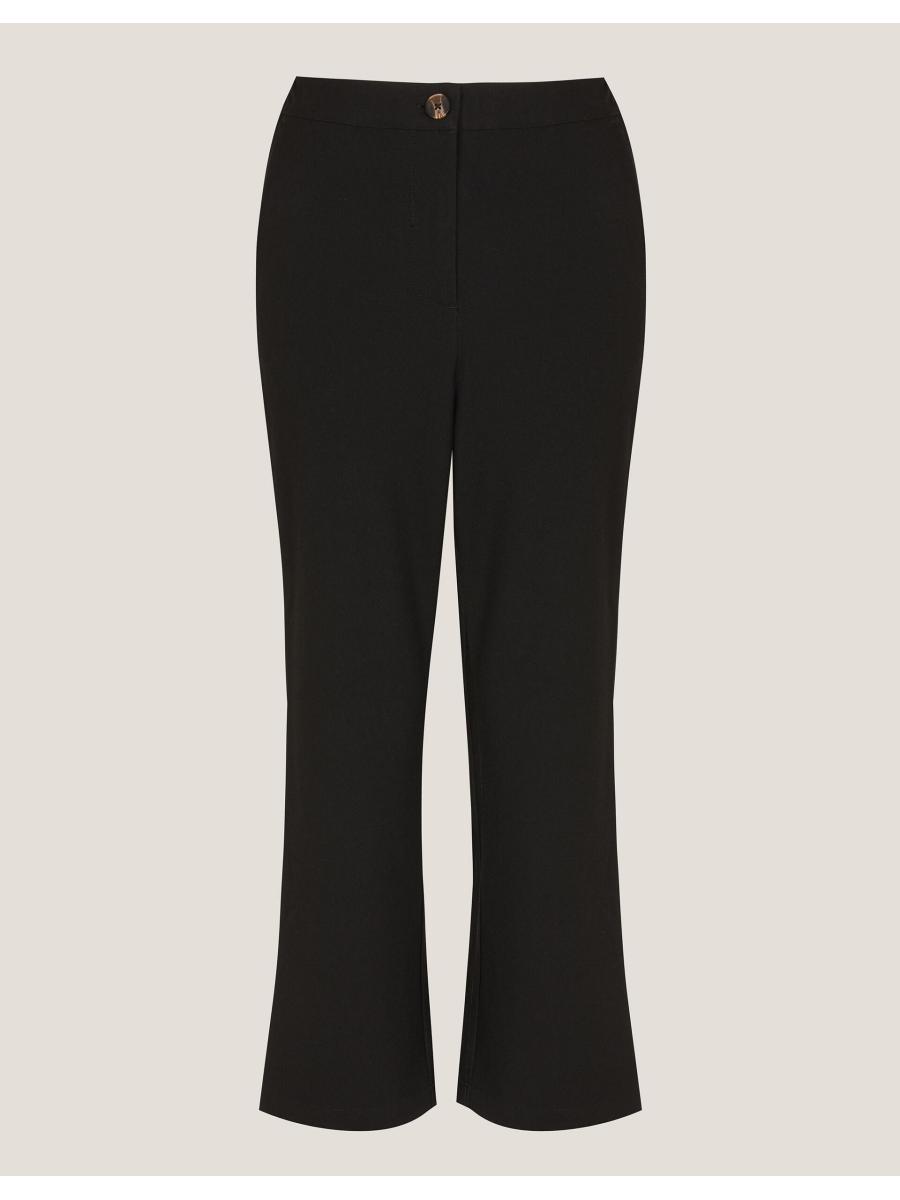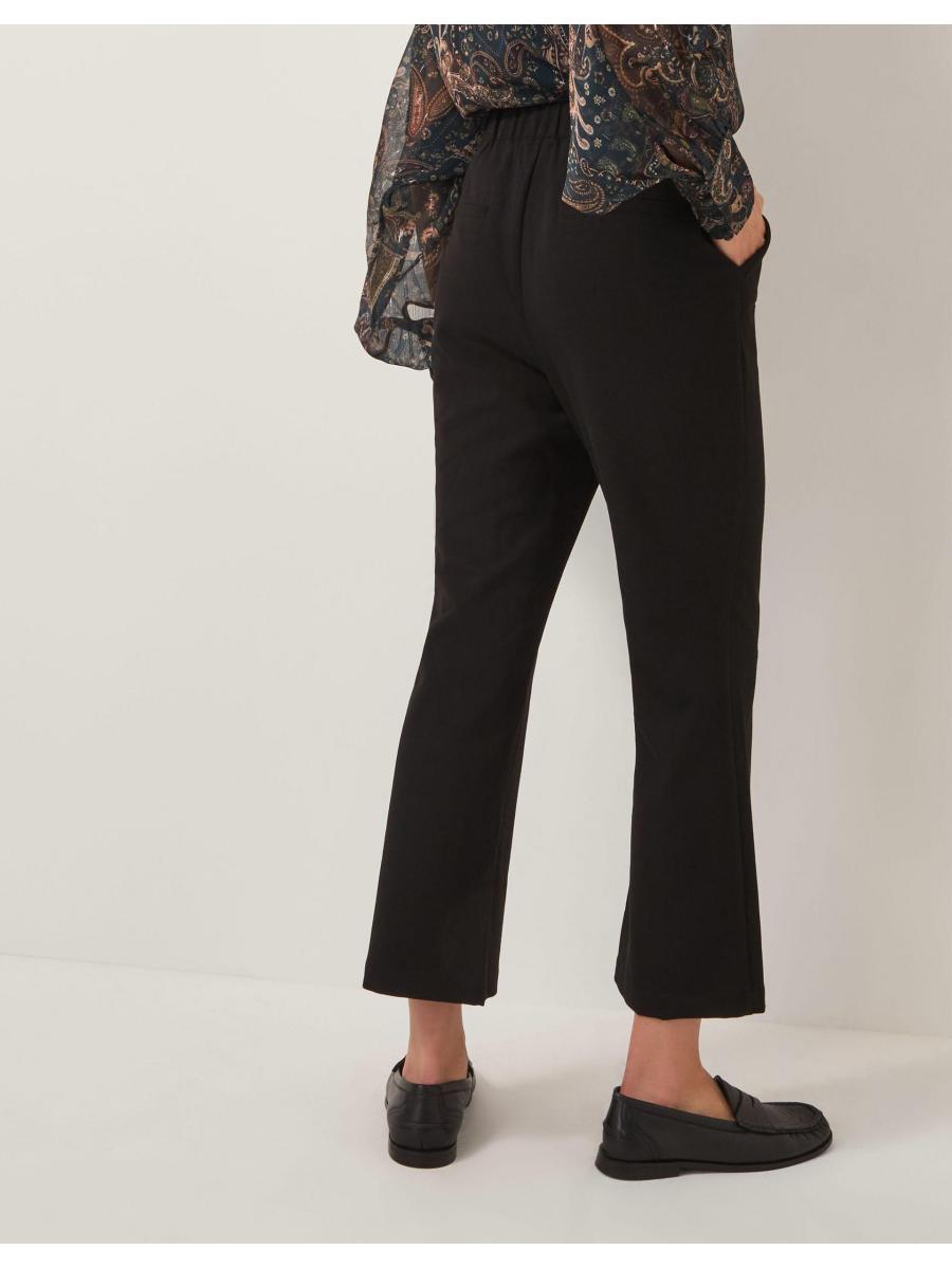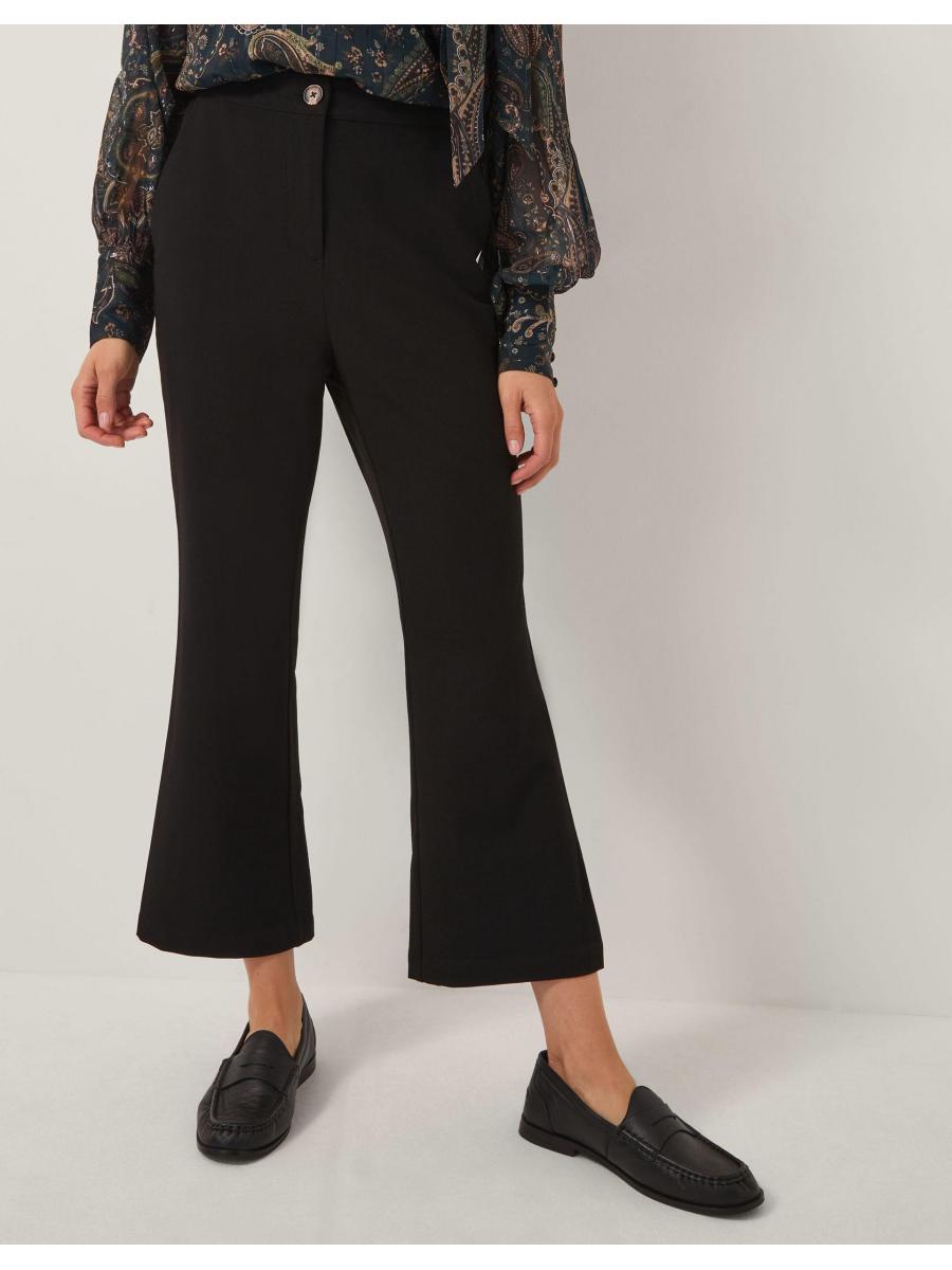 Cream of the crop. Adding new dimensions to your work wardrobe rotation. These trousers sit high on the waist with cropped cuffs that flare out above the ankles, leaving room to show off shiny loafers or sleek ballet pumps. Black