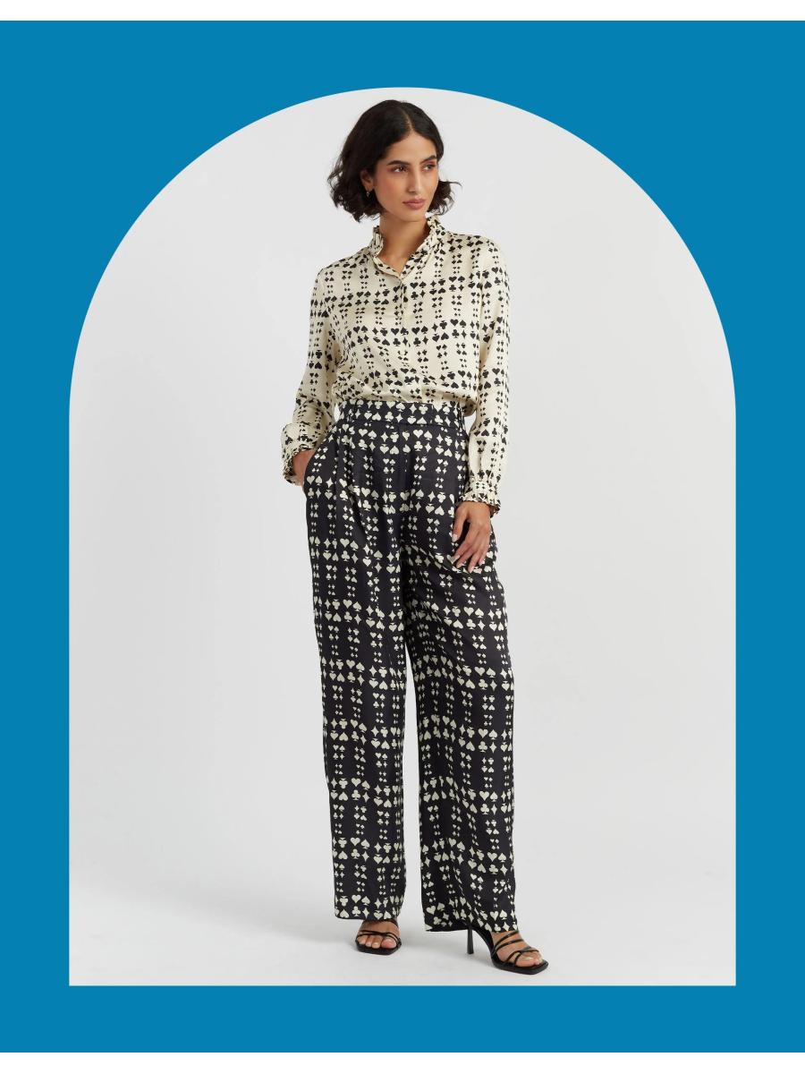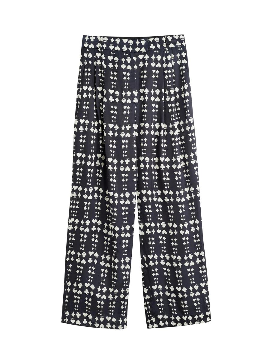 The product: Really suits you. The perfect pick for desk-to-dinner plans, these trousers are patterned with rows of clubs, diamonds, hearts and spades in monochrome shades. Create a playful co-ordinated look with the matching blazer.