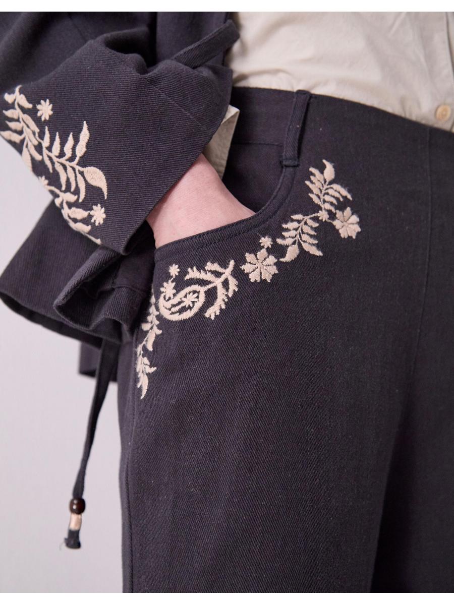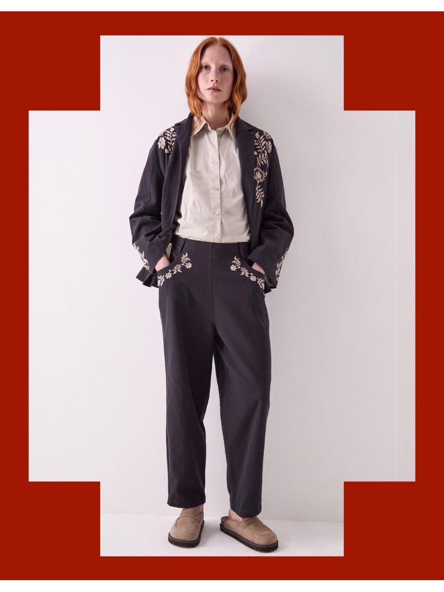 The product: Who doesn't love a bit of embroidery? A smart style with a boho twist, these trousers are designed with a stretchy back band for comfort and a slouchy, tapered leg fit. And in classic East style, the side slant pockets are decorated with whimsical floral embroidery. Matching jacket available.