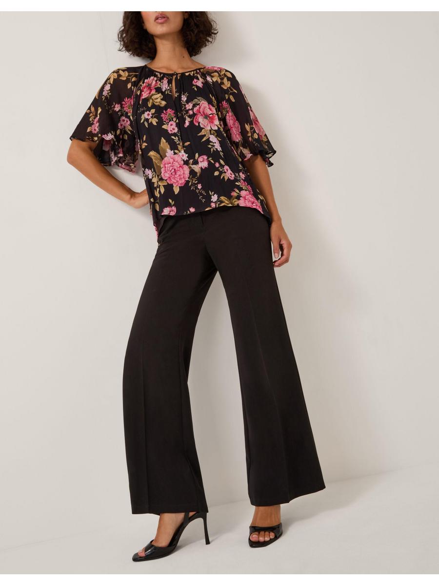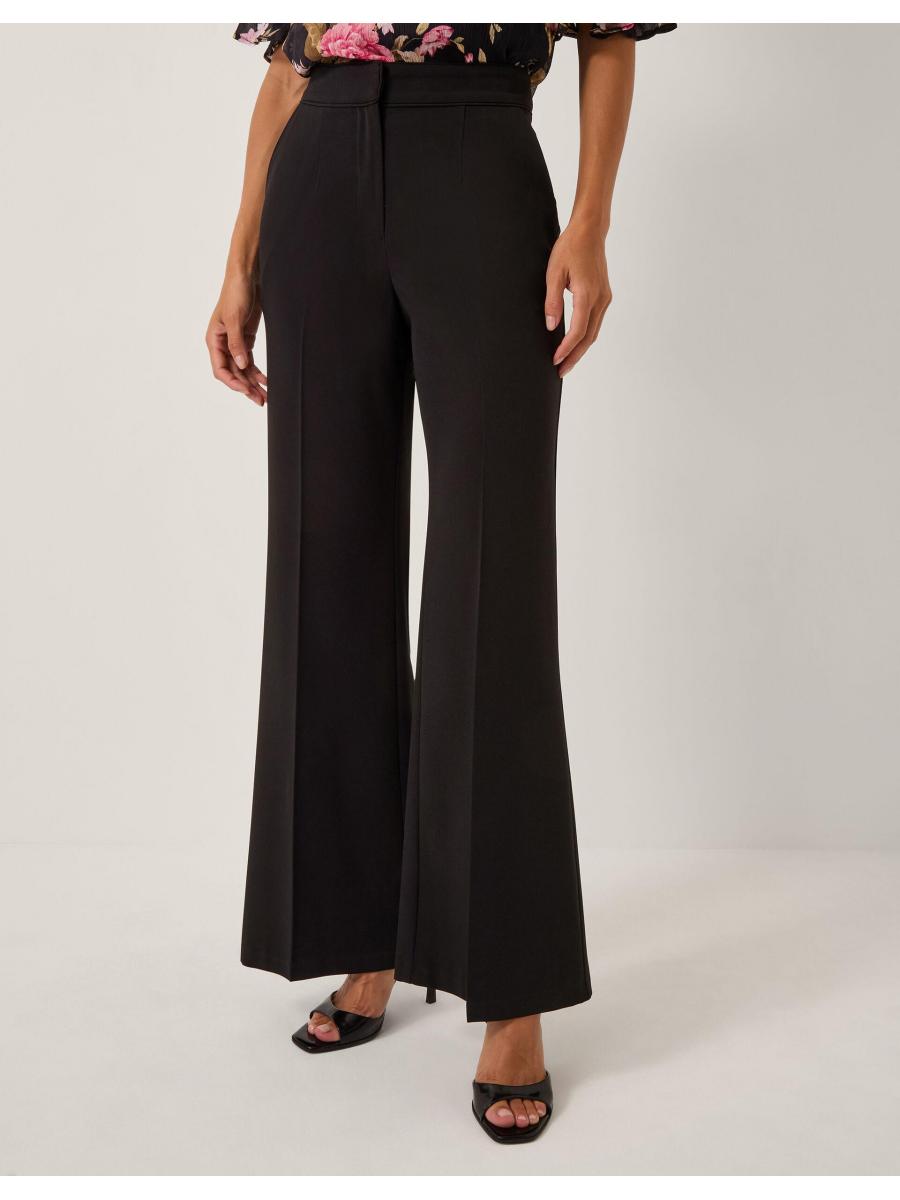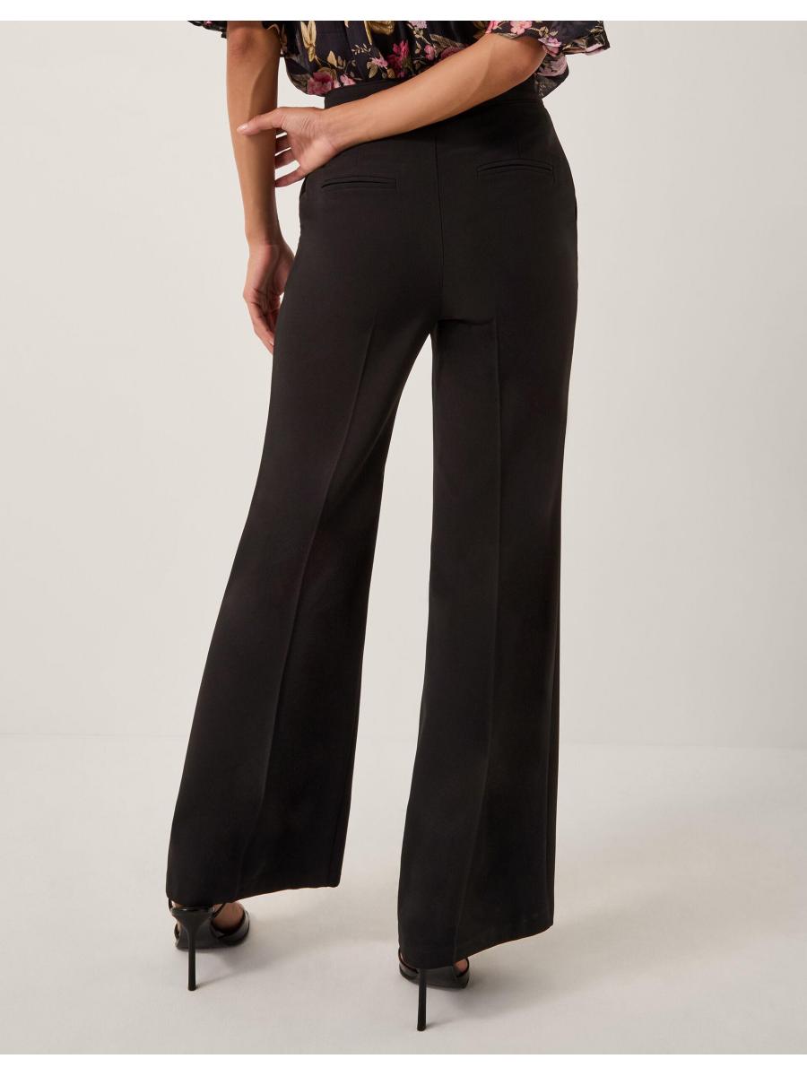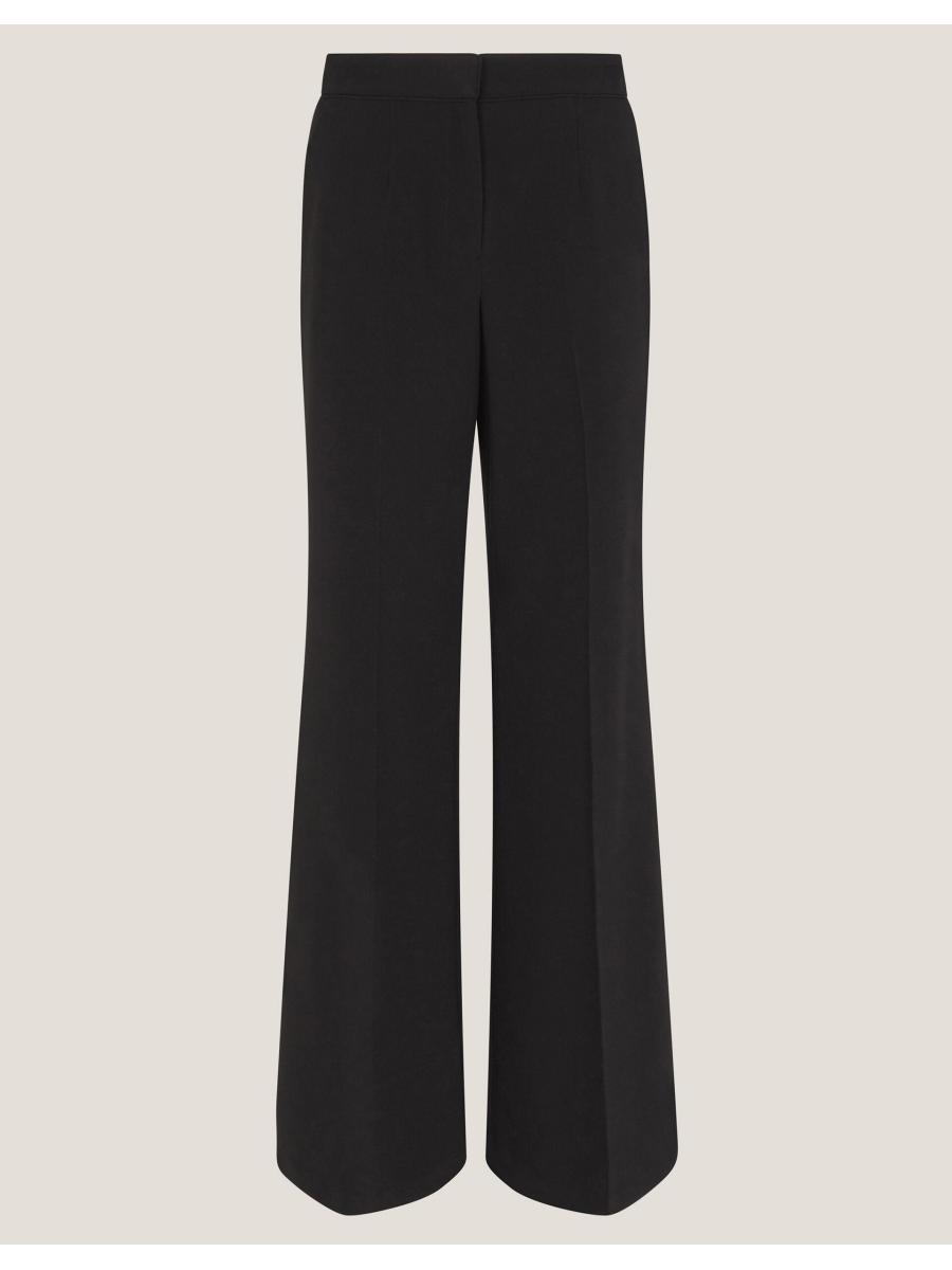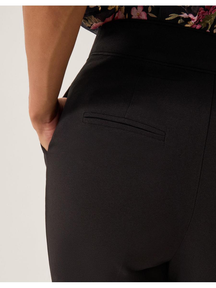 Classic and timeless. These tailored trousers feature a high waistline and slightly flared hems for a structured fit. Finished with side and back pockets. Black