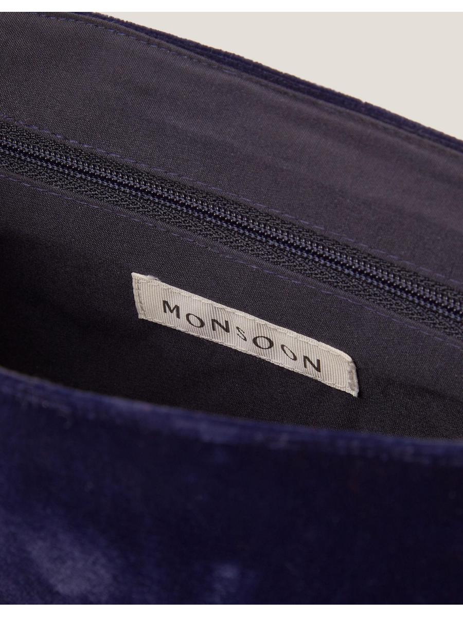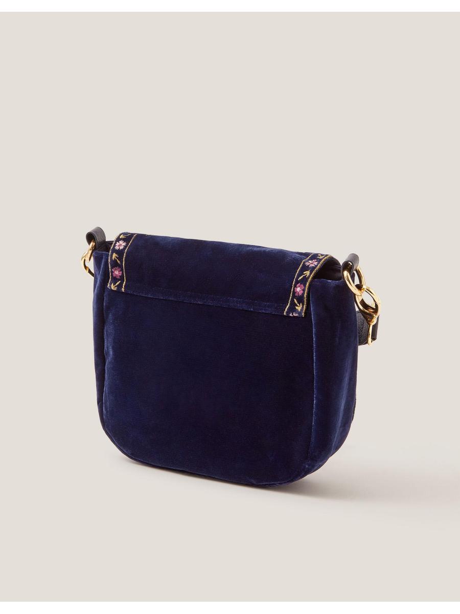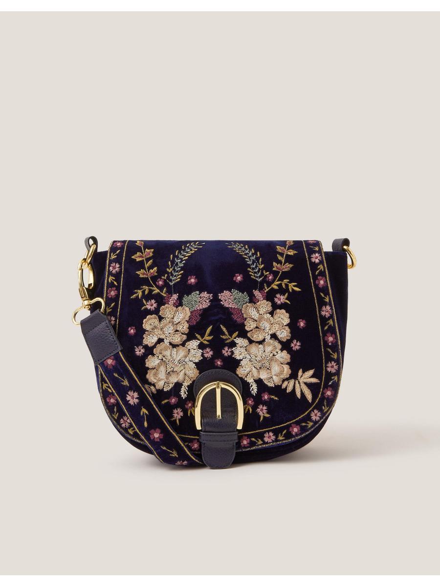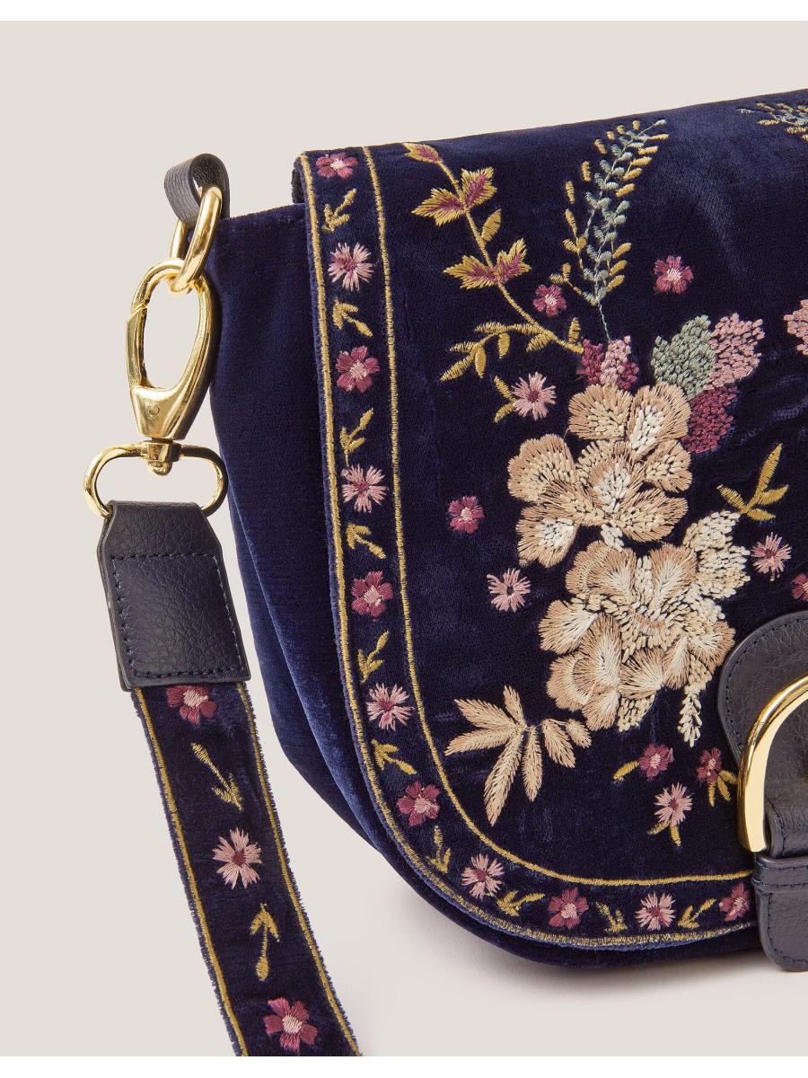 Description Say howdy to your new favourite accessory. A little boho, a little Western, this bag is perfect for festival season (and beyond)! Designed in a satchel profile with a gold-tone buckle detail, the luxe velvet fabric is stitched with floral embroidery for a decorative finish. Features include an adjustable crossbody strap, magnetic button fastening and small zip pocket inside. Details Fabric & Details Outer: Polyester 100% Lining: Polyester 100% H 18 cm x W 23 cm wipe clean Embroidered Weight: 235.0 ID: 1000812824b-details__content-item"> Outer: Polyester 100% Lining: Polyester 100%