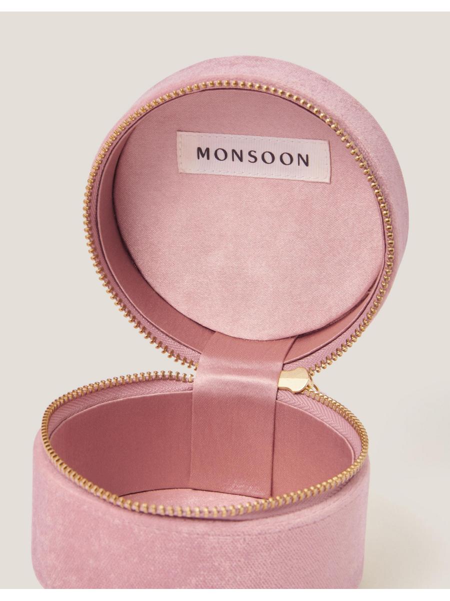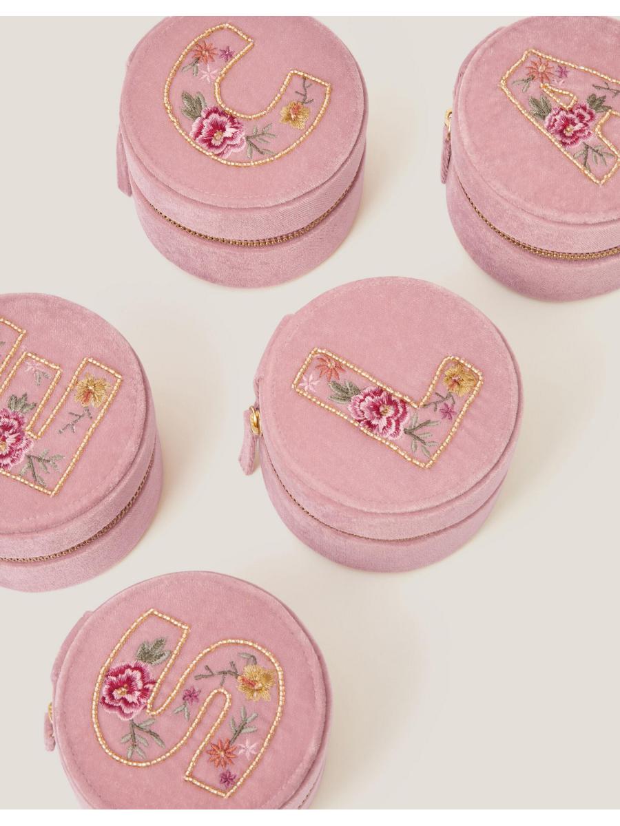 One for the accessory lovers. Wrapped in oh-so soft velvet, this round jewellery box showcases an initial embroidered on the lid, finished with flower and sparkly bead embellishments. Made for storing earrings, necklaces and bracelets, it's a great gift for globetrotters, too! Pink