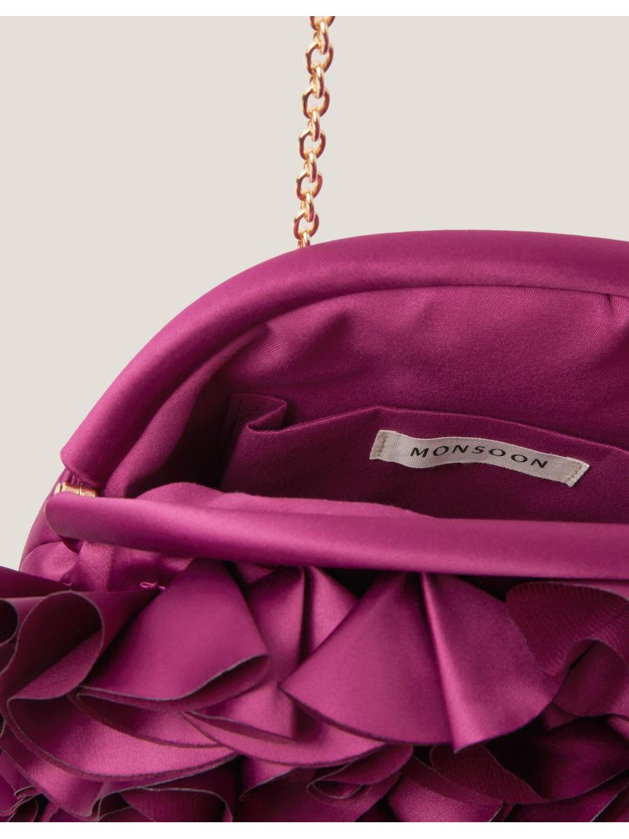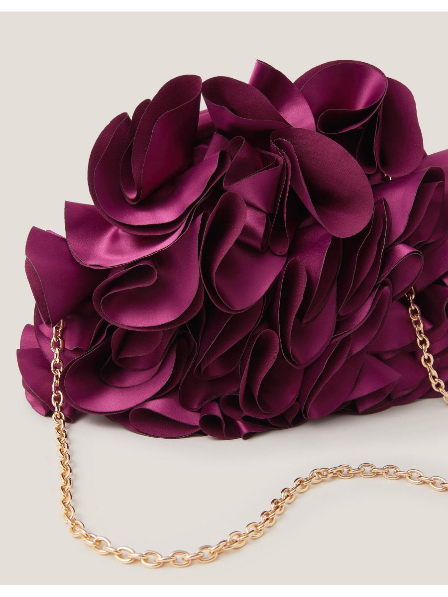 Description Easy wear elegance. The perfect plus-one to all your night-out and special occasion outfits, this clutch is a sartorial bouquet. Made from burgundy satin, it's designed with a clip frame profile and optional chain strap for hands-free styling. Details Fabric & Details Outer: Elastane 4% , Polyester 96% Lining: Polyester 100% H 9 cm x W 15 cm x L 20 CM Wipe clean Clasp Plain Weight: 275.0 ID: 1000862621b-details__content-item"> Outer: Elastane 4% , Polyester 96% Lining: Polyester 100%