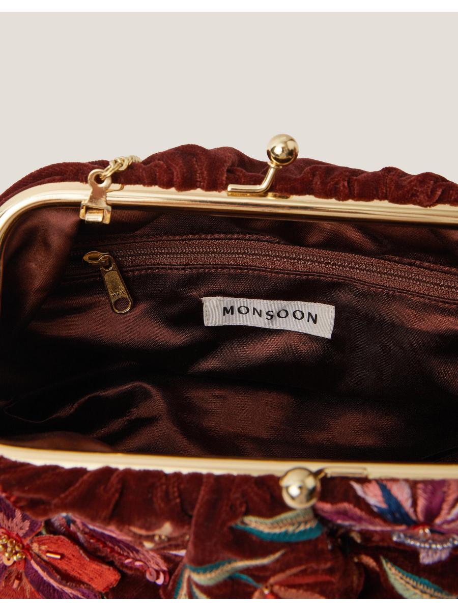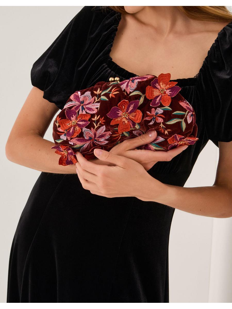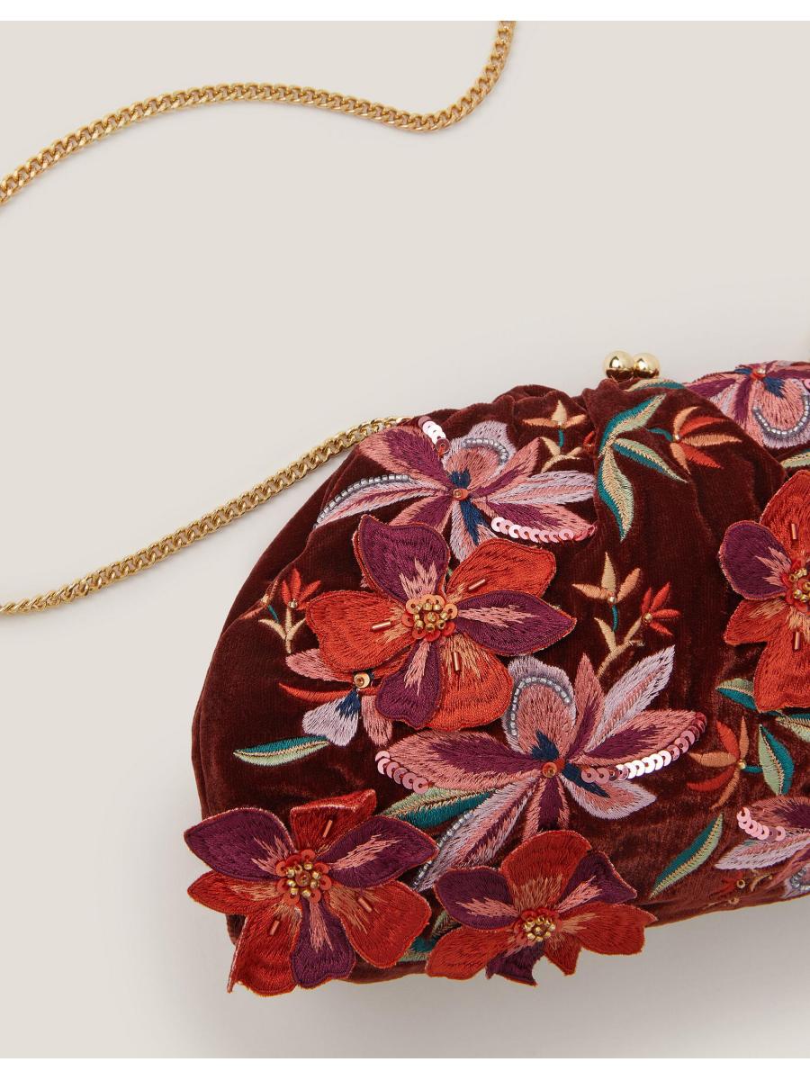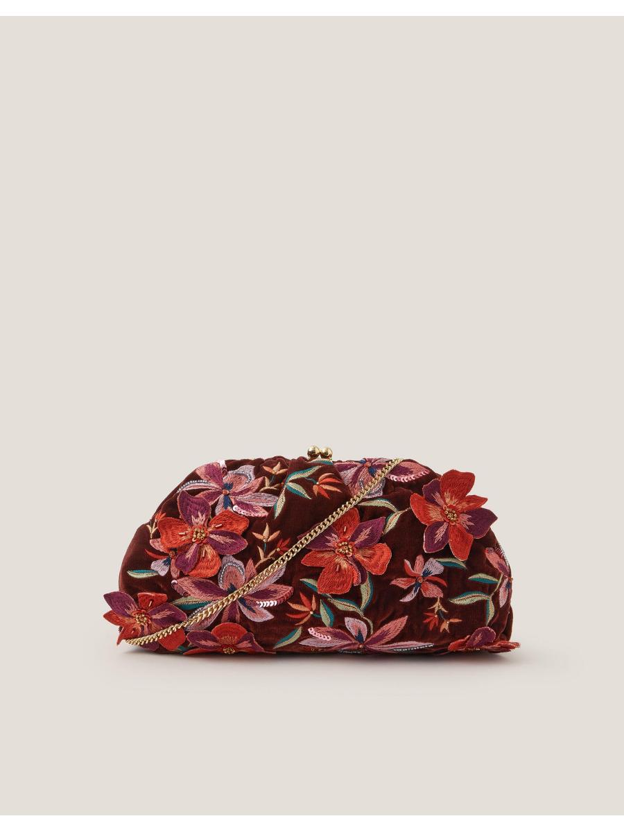 Description RSVP ready. The perfect pick for special occasions, this clutch bag showcases a fiery bouquet of appliqué flowers with beautiful bead and sequin embellishments. Designed with a clip frame profile, optional chain strap and zip compartment inside. Details Fabric & Details Outer: Polyester 100% Lining: Polyester 100% H 18 cm x W 30 cm wipe clean Clasp Embroidered Weight: 245.0 ID: 1000877884b-details__content-item"> Outer: Polyester 100% Lining: Polyester 100%