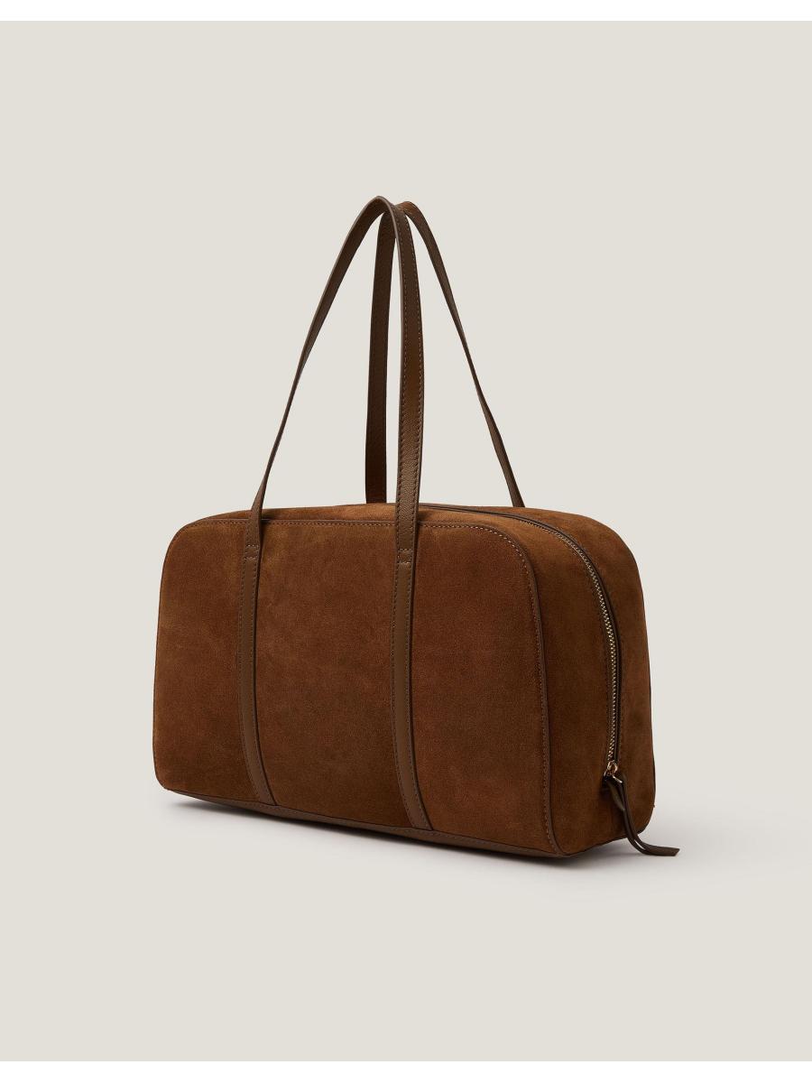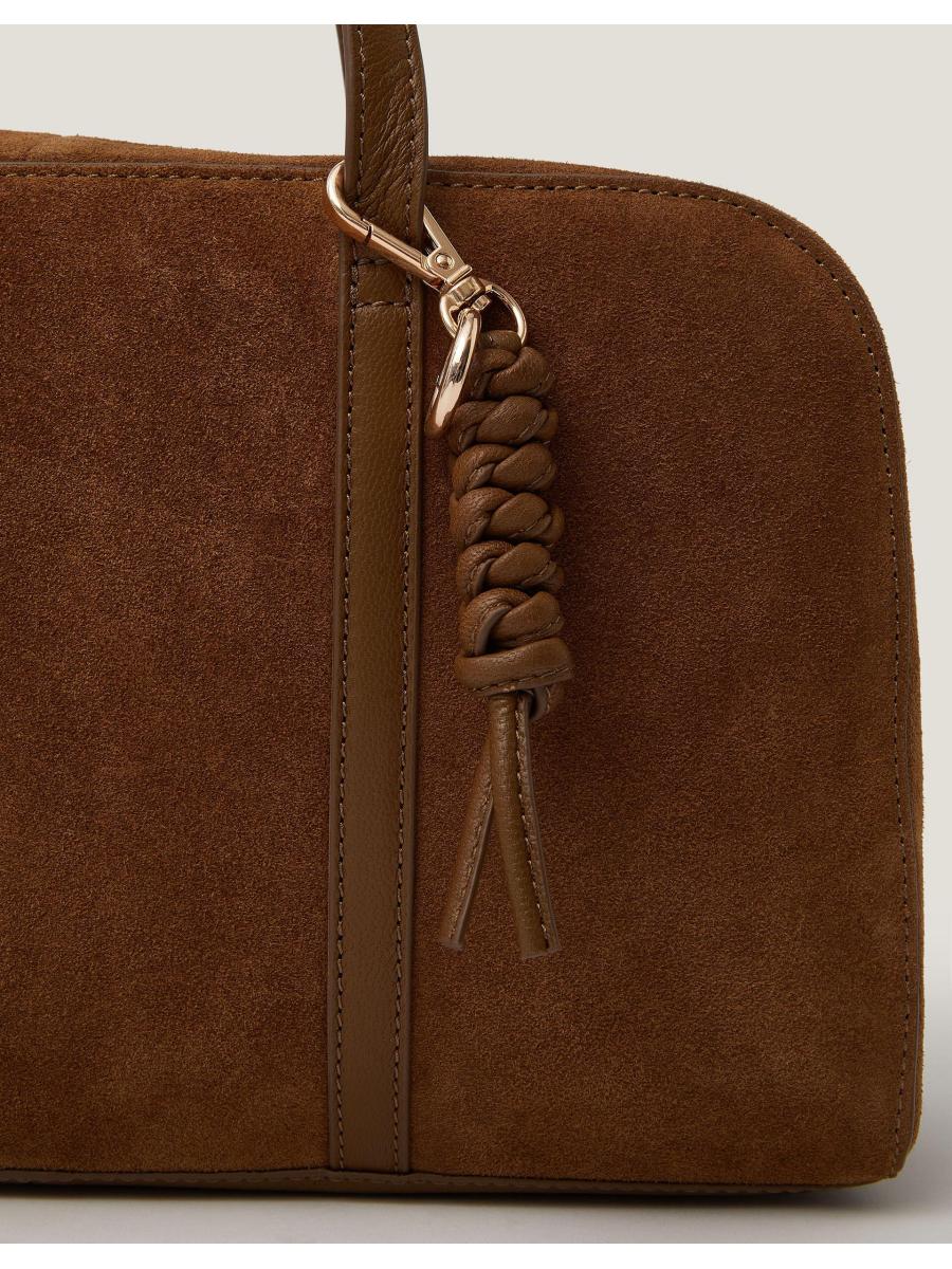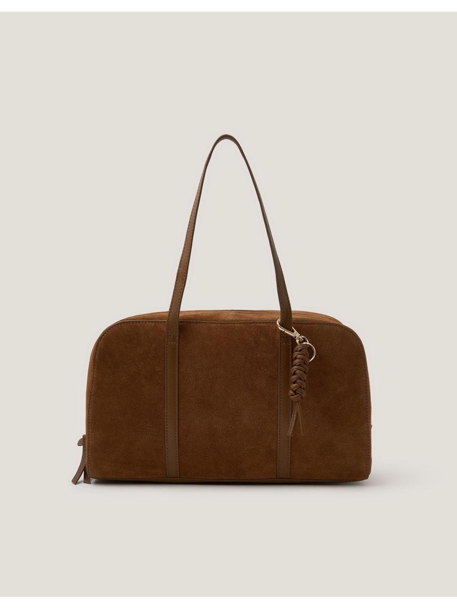 Description Picture it: the colour of the year on your shoulder. Wrapped in cappuccino suede, this bowling bag is a wonderful addition to your collection. It features rounded edges, shoulder straps and a knotted charm on the front. Details Fabric & Details Outer: Leather (Cow) 90% , Leather (Goat) 10% Lining: Polyester 100% W 35 cm x L 12 cm Wipe clean Zip fastening Plain Weight: 750.0 ID: 1000972677b-details__content-item"> Outer: Leather (Cow) 90% , Leather (Goat) 10% Lining: Polyester 100%